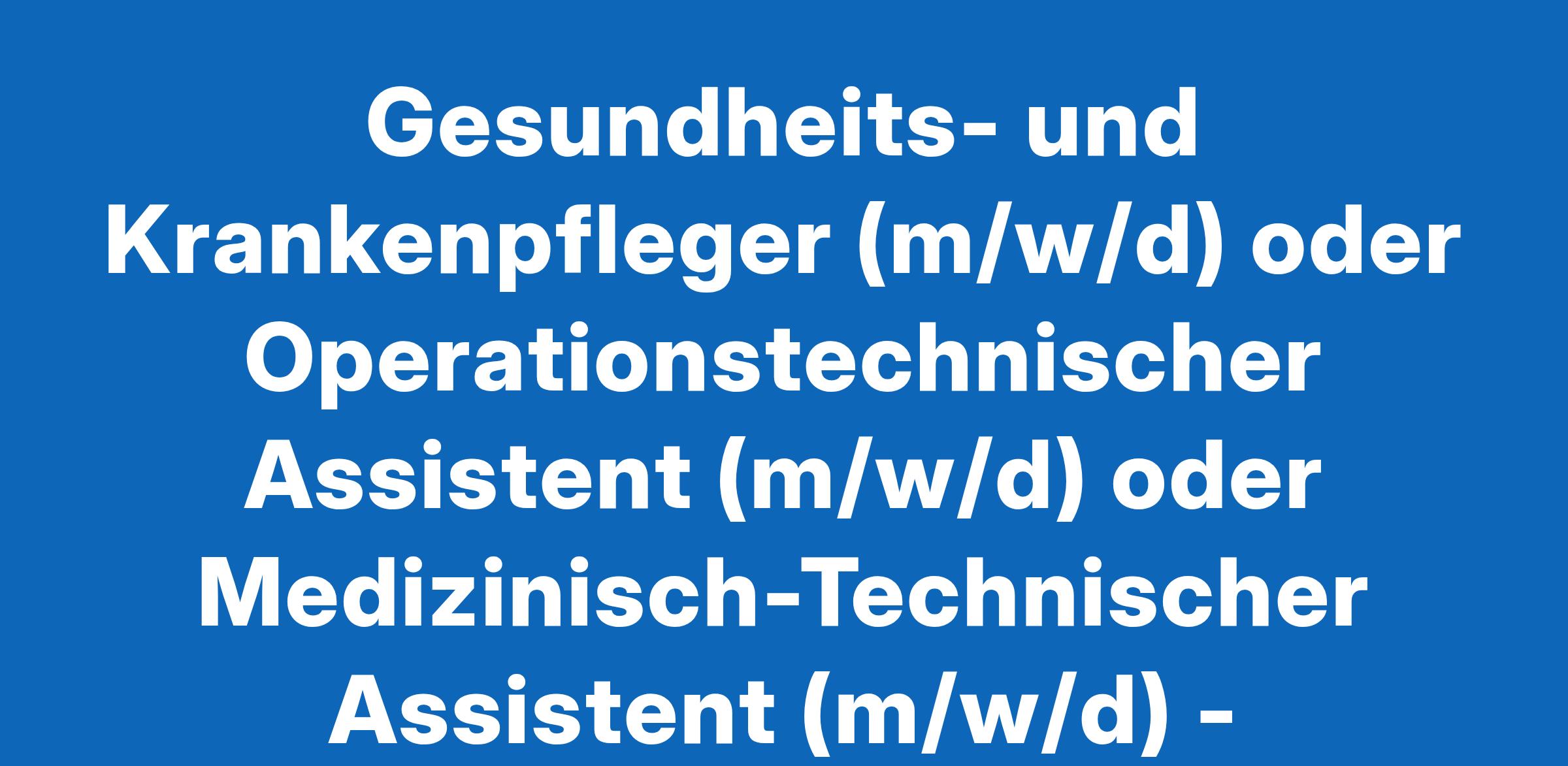 Gesundheits- und Krankenpfleger (m/w/d) oder Operationstechnischer Assistent (m/w/d) oder Medizinisch-Technischer Assistent (m/w/d) - Funktionsdiagnostik für unser elektrophysiologsiches HerzkatheterlaborVollzeit