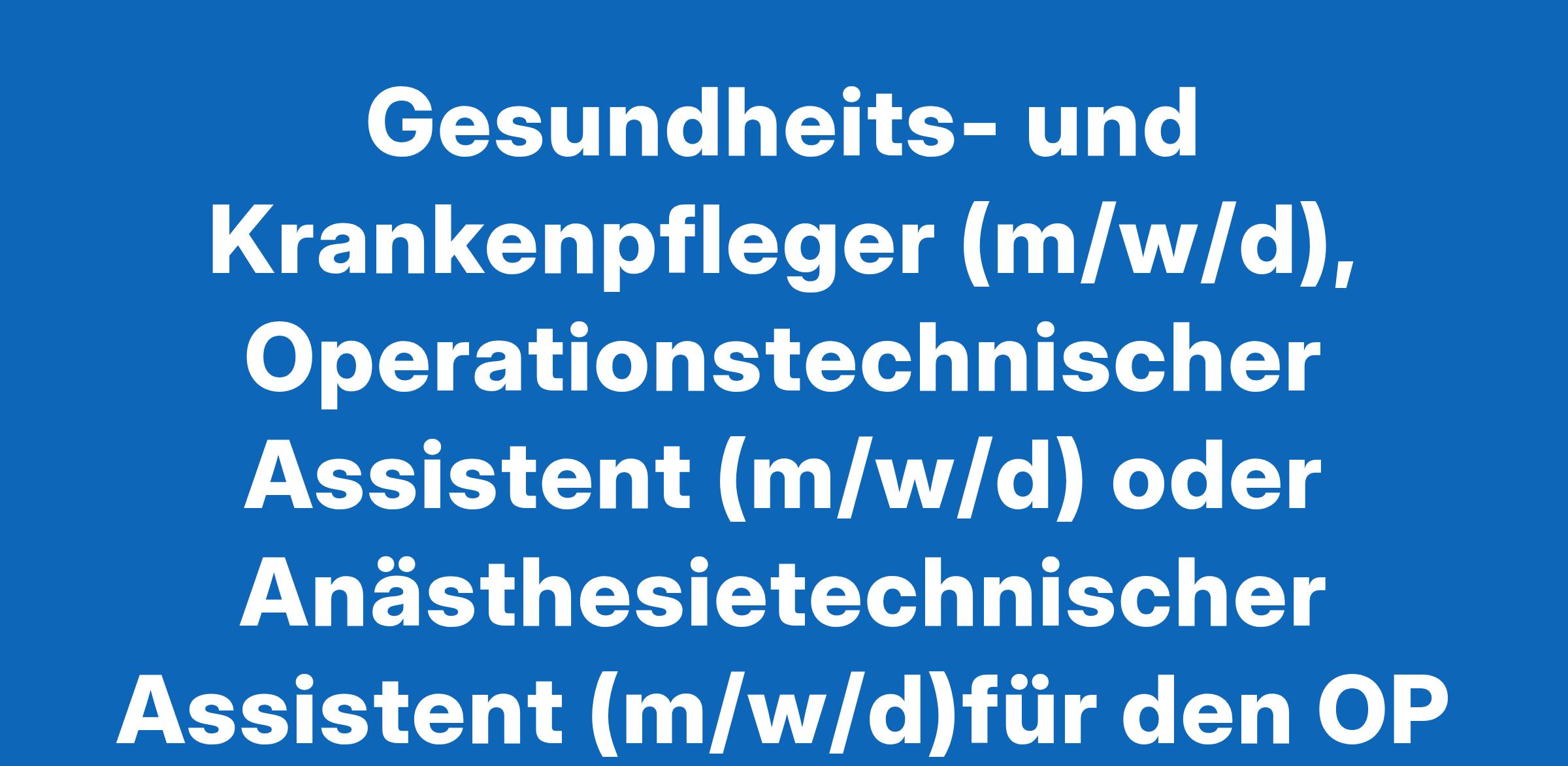 Gesundheits- und Krankenpfleger (m/w/d), Operationstechnischer Assistent (m/w/d) oder Anästhesietechnischer Assistent (m/w/d)für den OP am Standort City