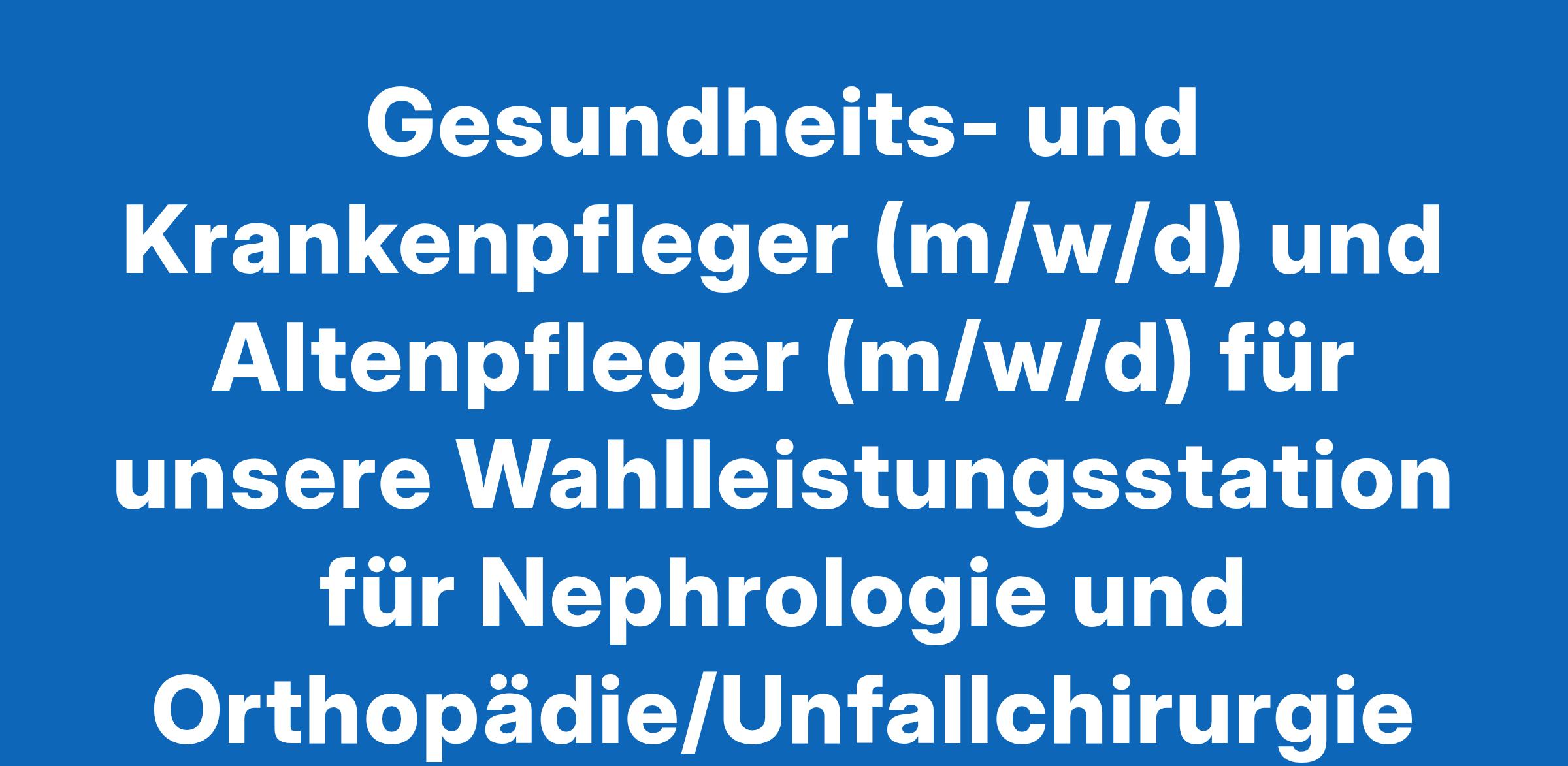 Gesundheits- und Krankenpfleger (m/w/d) und Altenpfleger (m/w/d) für unsere Wahlleistungsstation für Nephrologie und Orthopädie/Unfallchirurgie