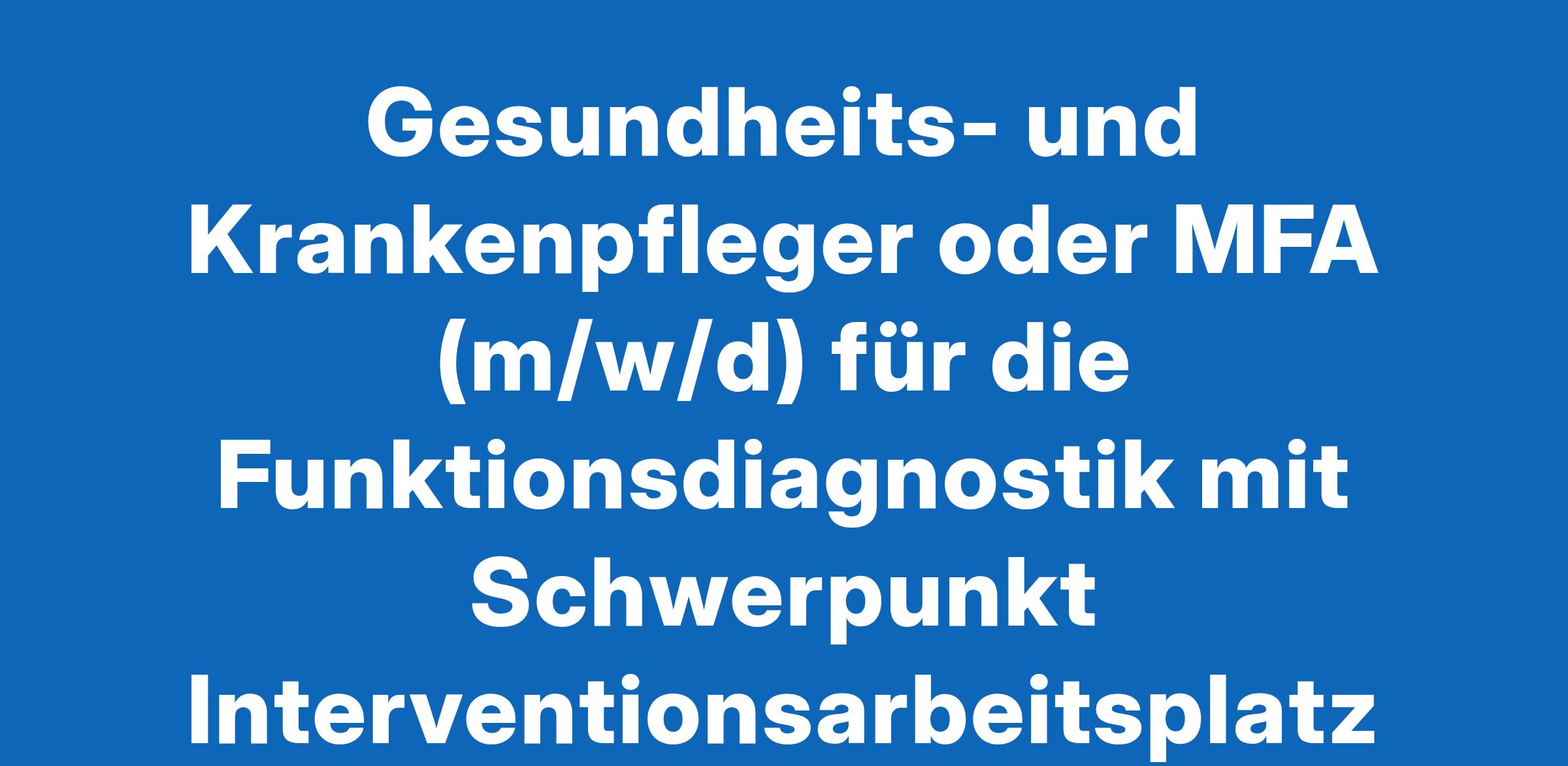 Gesundheits- und Krankenpfleger oder MFA (m/w/d) für die Funktionsdiagnostik mit Schwerpunkt Interventionsarbeitsplatz
