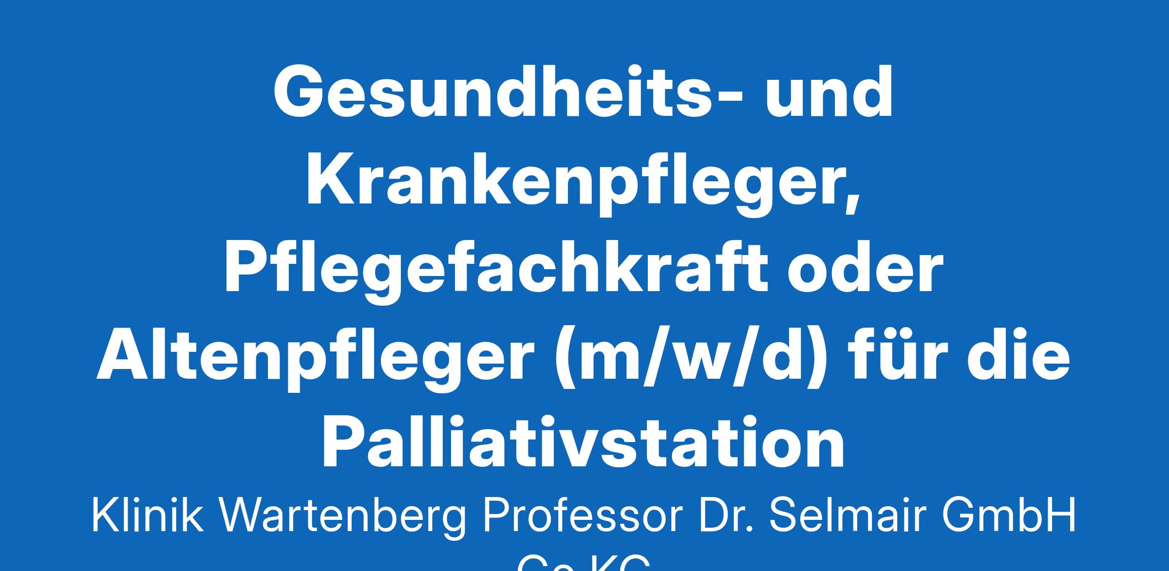 Gesundheits- und Krankenpfleger, Pflegefachkraft oder Altenpfleger (m/w/d) für unsere Palliativstation in Teilzeit oder Vollzeit