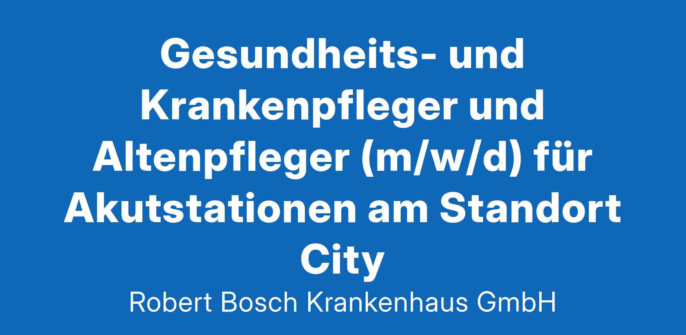 Für unsere neue Einrichtung Robert-Bosch-Krankenhaus Standort City suchen wir