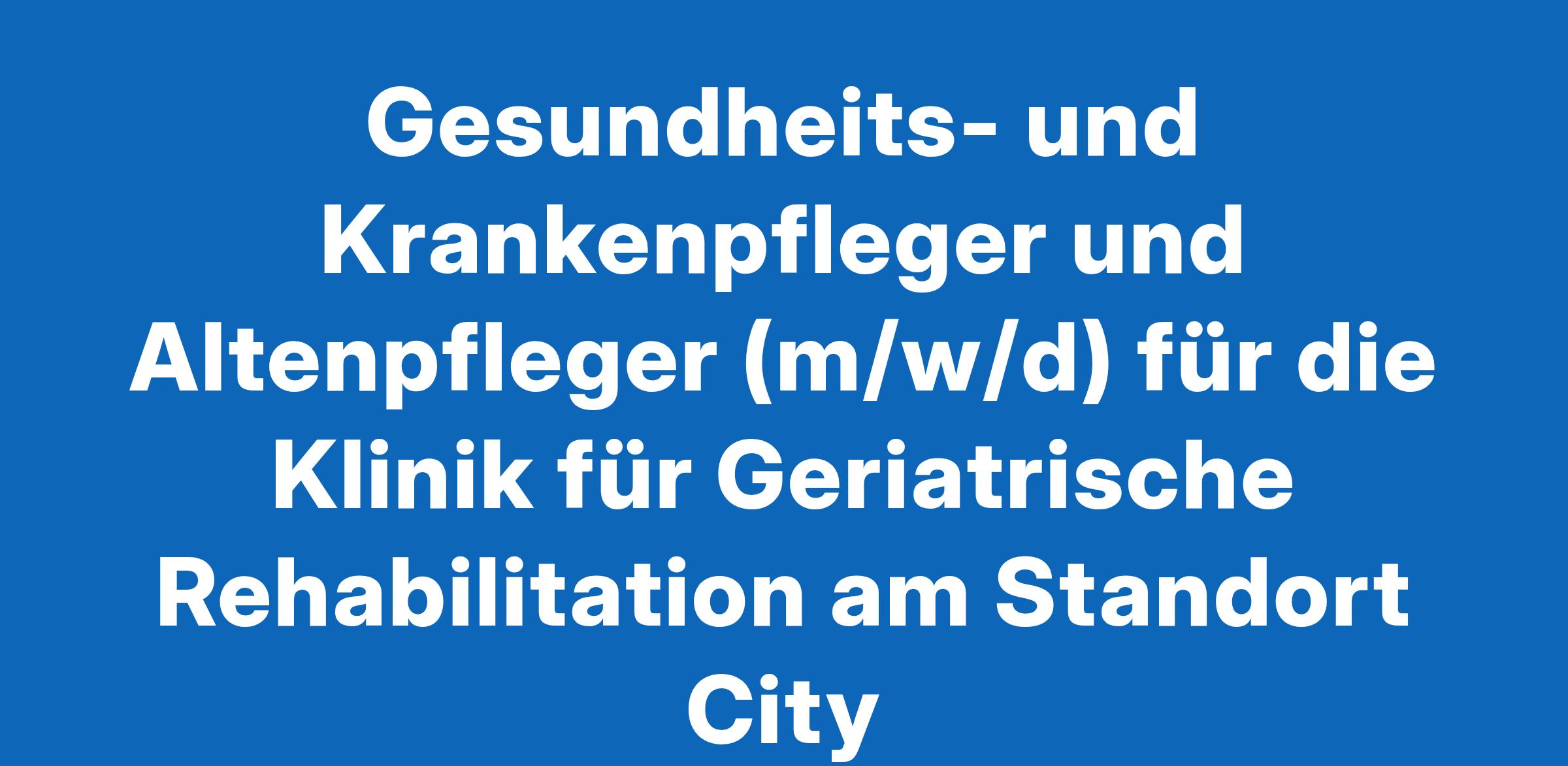 Gesundheits- und Krankenpfleger und Altenpfleger (m/w/d) für die Klinik für Geriatrische Rehabilitation am Standort City