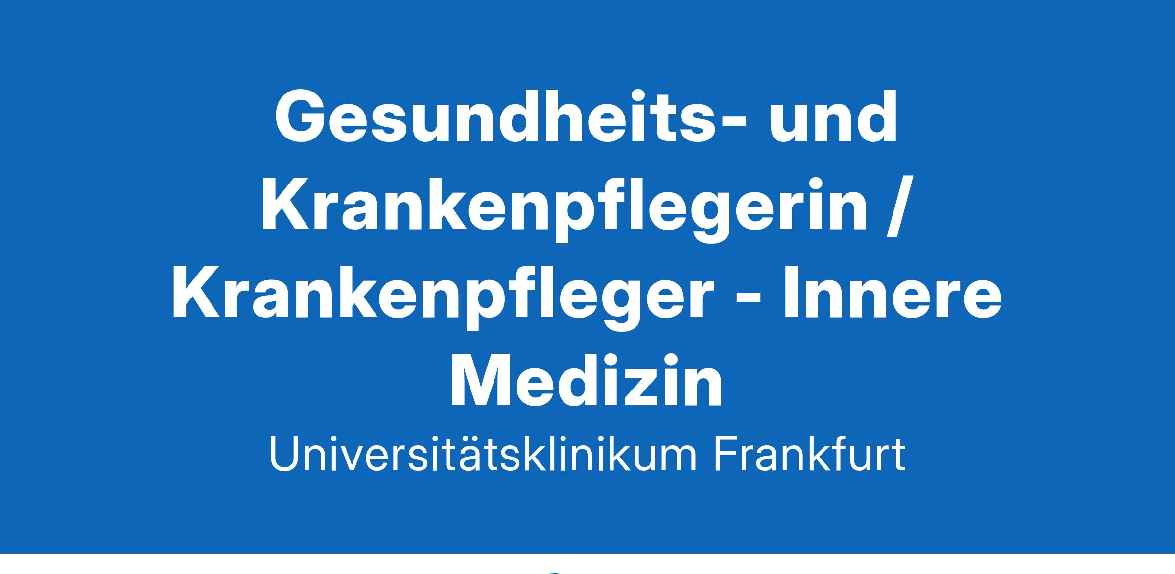 »Aus Wissen wird Gesundheit« - wir füllen dieses Motto tagtäglich mit Leben, entwickeln neue Ideen und Altbewährtes weiter. Das Universitätsklinikum Frankfurt besteht seit 1914 und unsere rund 7.500 Beschäftigten bringen sich mit ihrem Können und Wissen an den 33 Fachkliniken, klinisch theoretischen Instituten und in den Verwaltungsbereichen ein. Die enge Verbindung von Krankenversorgung mit Forschung und Lehre sowie ein Klima der Kollegialität, Internationalität und berufsgruppenübergreifender Zusammenarbeit zeichnen das Universitätsklinikum aus.Gesundheits- und Krankenpflegerin / Krankenpfleger - Innere Medizin(wir richten uns mit dieser Ausschreibung an Bewerbende jeden Geschlechts)
