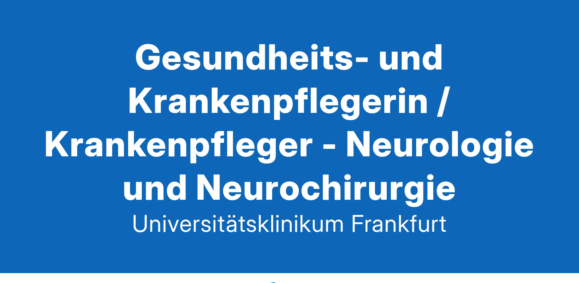„Aus Wissen wird Gesundheit“ - wir füllen dieses Motto tagtäglich mit Leben, entwickeln neue Ideen und Altbewährtes weiter. Das Universitätsklinikum Frankfurt besteht seit 1914 und unsere rund 8.500 Beschäftigten bringen sich mit ihrem Können und Wissen an den 33 Fachkliniken, klinisch theoretischen Instituten und in den Verwaltungsbereichen ein. Die enge Verbindung von Krankenversorgung mit Forschung und Lehre sowie ein Klima der Kollegialität, Internationalität und berufsgruppenübergreifender Zusammenarbeit zeichnen das Universitätsklinikum aus.Gesundheits- und Krankenpflegerin / Krankenpfleger - Neurologie und Neurochirurgie(wir richten uns mit dieser Ausschreibung an Bewerbende jeden Geschlechts)