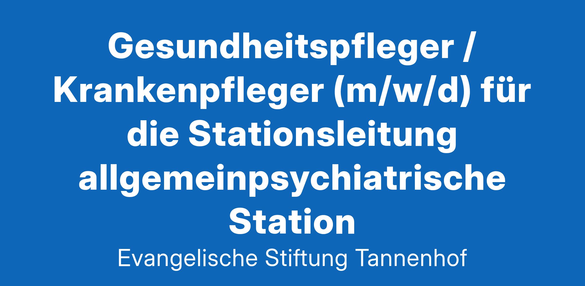Gesundheitspfleger / Krankenpfleger (m/w/d) für die Stationsleitung allgemeinpsychiatrische Station Als moderne Klinik und Lehrkrankenhaus der Ruhr-Universität Bochum für Psychiatrie, Psychotherapie, Suchtmedizin, Psychosomatik und Neurologie sind wir Spezialisten für das regionale Einzugsgebiet von über 1⁄2 Million Menschen in Wuppertal, Remscheid und Velbert. Wir suchen zum 01.03.2025 oder später einen Gesundheitspfleger / Krankenpfleger (m/w/d) als Stationsleitung für unsere allgemeinpsychiatrische Station Der Schwerpunkt unserer allgemeinpsychiatrischen Station ist die Behandlung von Patienten mit verschiedenen akuten psychischen Erkrankungen, unter anderem mit schizoaffektiven Psychosen, akuter Suizidalität, Depressionen, Neurosen und Persönlichkeitsstörungen, sowie Menschen in akuten Lebenskrisen. Wir bieten ein unbefristetes Arbeitsverhältnis in Vollzeit an unserem Campus in Remscheid-Lüttringhausen. Ihre Aufgaben: Planung des Personaleinsatzes der zugewiesenen Station Erstellen von Dienstplänen und Urlaubsplänen Leitung und Entwicklung eines engagierten Teams Führen von Mitarbeitergesprächen Enge Zusammenarbeit mit den Fachgesundheits- und Krankenpfleger zur Sicherstellung und Umsetzung patientenorientierter Arbeitsabläufe und pflegerischer Versorgung Kooperation mit allen interdisziplinär arbeitenden Bereichen Ansprechperson bei Beschwerden von Patienten und Angehörigen Organisation von Fortbildungen und Unterweisungen Was wir suchen, sind Sie ... mit einer abgeschlossenen Ausbildung in der Gesundheits- und Krankenpflege sowie einer abgeschlossenen Weiterbildung zur Leitung einer Station, einem vergleichbaren Studium oder der Bereitschaft, sich weiterzubilden mit mehrjähriger Berufserfahrung als Leitung im stationären Bereich der Psychiatrie mit sicherem und wertschätzendem Führungsverhalten sowie einer prozessorientierten und innovativen Denkweise mit Begeisterung für Neues mit Freundlichkeit und Professionalität mit fachlichen, verantwortungsbewussten, organisatorischen und sozialen Kompetenzen mit Durchsetzungsvermögen, Kommunikationsstärke, Konfliktfähigkeit, Selbstreflexion, Kritikfähigkeit und Belastbarkeit mit einer berufsgruppenübergreifenden Kooperationsfähigkeit sowie Planungs- und Organisationsgeschick mit einer kontinuierlichen Fortbildungsbereitschaft mit guten EDV-Kenntnissen mit einer Identifikation mit den Zielen und Werten eines christlich geprägten Arbeitgebers Was wir bieten: Tarifliche Vergütung nach BAT-KF Gute Verkehrsanbindung Kita auf dem Campus in Remscheid Kantine auf dem Gelände bzw. an den Standorten Attraktive betriebliche Altersvorsorge der kirchlichen Zusatzversorgung Parkplätze auf dem Gelände Sport- und Fitnessangebote Für weitere Informationen steht Ihnen Frau Steinmann, Pflegedienstleitung, gerne unter der Telefonnummer 02191 12 1152 zur Verfügung. Wir freuen uns über Ihr Interesse. Evangelische Stiftung Tannenhof | Remscheider Straße 76 | 42899 Remscheid