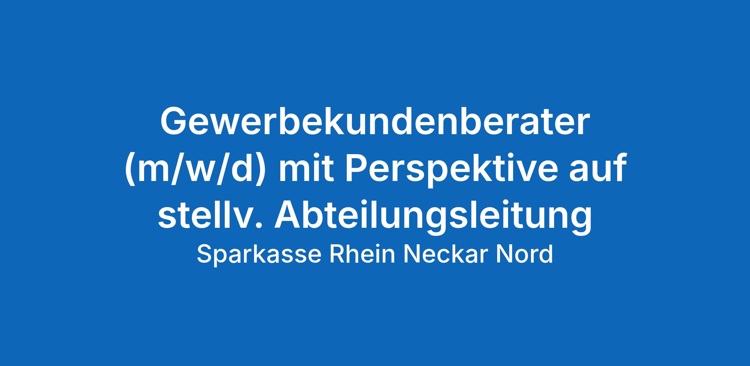 Gewerbekundenberater (m/w/d) mit Perspektive auf die stellv. Abteilungsleitung Du:Um der Tätigkeit als Gewerbekundenberater (m/w/d) gerecht zu werden, erweiterst Du ständig Dein Fachwissen: Du besuchst Weiterbildungsmaßnahmen (Tagungen, Seminare und Coachings) und erhältst so die Möglichkeit, Dich fachlich und persönlich auf weitere Karriereschritte vorzubereiten. It's up to you: Abhängig von Deiner persönlichen Eignung und Präferenz könntest Du Dich so in Richtung Firmenkundenberatung weiterentwickeln, die stellvertretende Leitung unserer Gewerbekundenabteilung übernehmen oder Deinen individuellen Karrierepfad innerhalb unserer Sparkasse beschreiten.