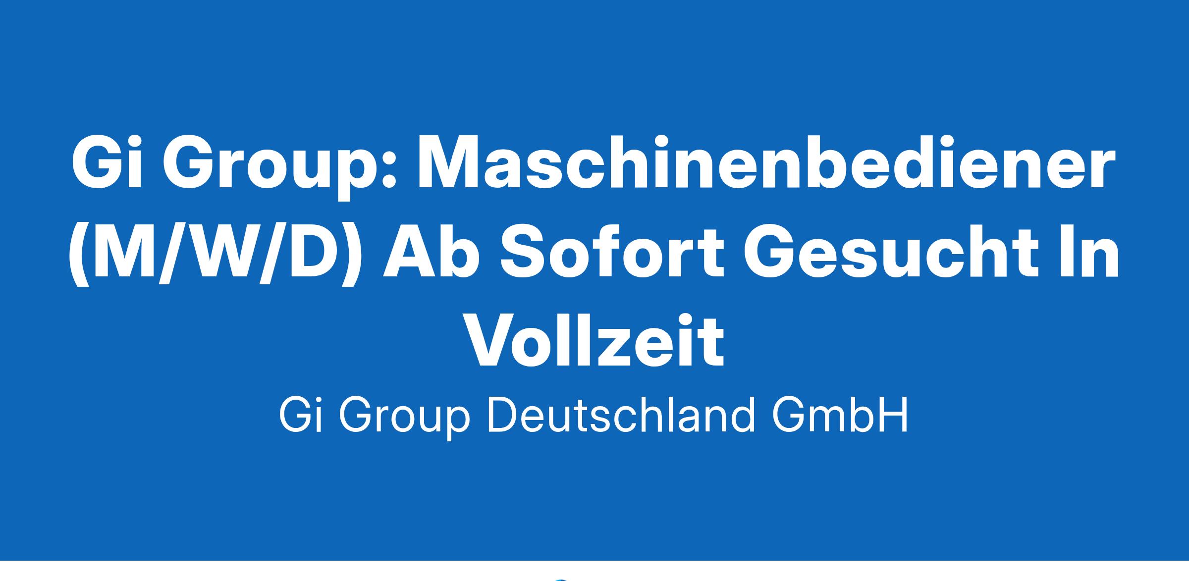 Gi Group: Maschinenbediener (M/W/D) Ab Sofort Gesucht In Vollzeit