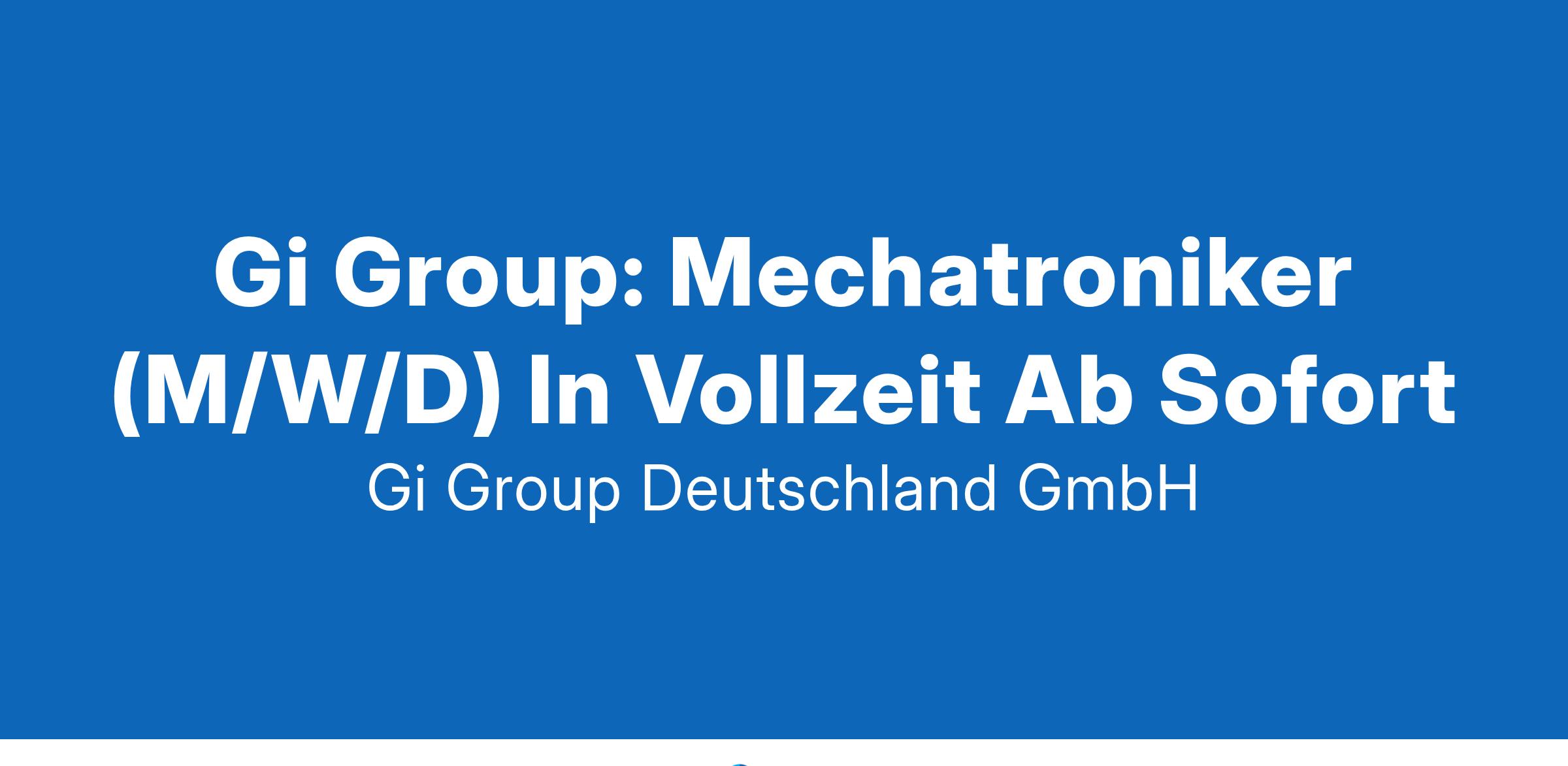 Gi Group: Mechatroniker (M/W/D) In Vollzeit Ab Sofort