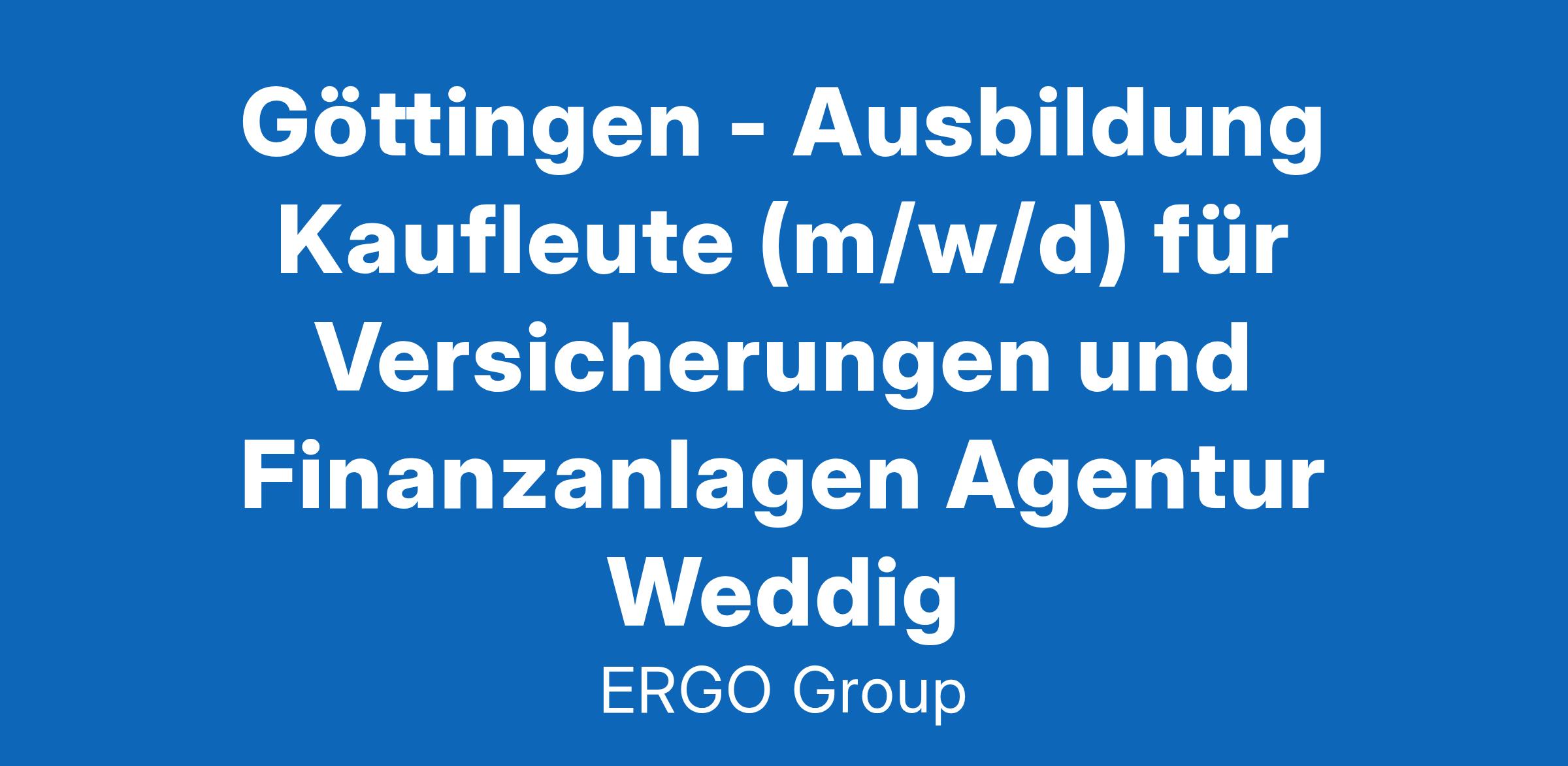 Göttingen - Ausbildung Kaufleute (m/w/d) für Versicherungen und Finanzanlagen Agentur WeddigDu hast Spaß am Umgang mit Menschen? Du arbeitest gern eigenverantwortlich und gibst alles für Deine beruflichen Ziele? Bestens – wir suchen Dich! Komm zu ERGO und schaffe die Basis für eine aussichtsreiche Karriere.Menschen verstehen und gemeinsam Lösungen entwickeln