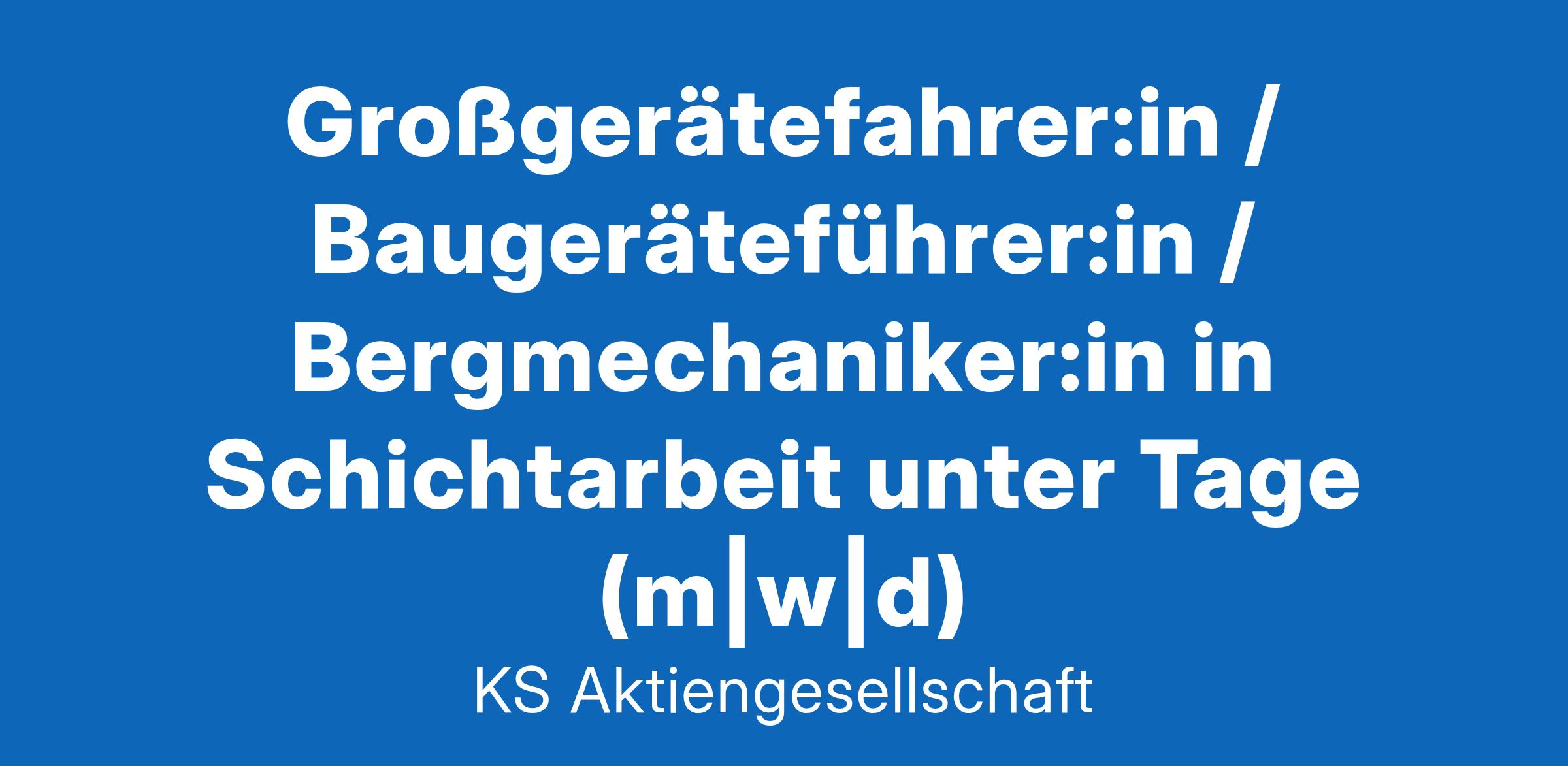 Das erwartet SieAls Großgerätefahrer:in im Bergmännischen Bereich der K+S Minerals and Agriculture GmbH am Standort Borth übernehmen Sie ab dem 01.03.2025 oder zum nächstmöglichen Einstieg folgende Aufgaben:Bedienung von Standardgewinnungsmaschinen wie Lademaschinen, Großloch- und SprenglochbohrwagenDurchführung bergbauspezifischer Nebenarbeiten sowie abteilungsspezifischer AufgabenKontrolle der Betriebs- und Arbeitsmittel auf ordnungsgemäßen Zustand sowie der Fahrzeuge auf Verkehrs- und Betriebssicherheit vor jeder InbetriebnahmeSicherstellung von Ordnung und Sauberkeit am ArbeitsplatzBewerten der First- und StoßsicherheitDas bringen Sie mitAbgeschlossene technische oder handwerkliche Berufsausbildung, z. B. als Großgerätefahrer:in, Baugeräteführer:in oder Bergmechaniker:inPraktische Erfahrung im Bergbau, Tunnel-, Straßen- oder Tiefbau von VorteilGesundheitliche Eignung für die dauerhafte Tätigkeit unter Tage (Grubentauglichkeit), Untersuchung erfolgt vor OrtBereitschaft zur Schichtarbeit im Drei-Schicht-System, auch an Wochenenden und FeiertagenTeamfähigkeit, Flexibilität und Belastbarkeit sowie eigenverantwortliches Arbeiten und sicherheitsbewusstes HandelnSehr gute Deutschkenntnisse in Wort und SchriftWir bereichern Ihr Leben Corporate Benefits Attraktive Vergütung Wohlbefinden & Leistungsfähigkeit Bike-Leasing Altersvorsorge Langzeitkonto Ideenmanagement Kumpelmentalität Sicherer Arbeitsplatz Teamevents Weiterbildungen Arbeitskleidung Arbeitsmedizinische Vorsorge Aufstiegsmöglichkeiten Mindestens 30 Tage Urlaub Vergünstigungen Planungssicherheit Chancengleichheit, Vielfalt & Inklusion Zusatzqualifikationen Gesundheitsaktionstage Zuschläge Kostenlose Getränke Mehrarbeit E-Learning-Plattform Zusätzliche Angebote Kostenlose Parkplätze Zusätzliche Freizeit