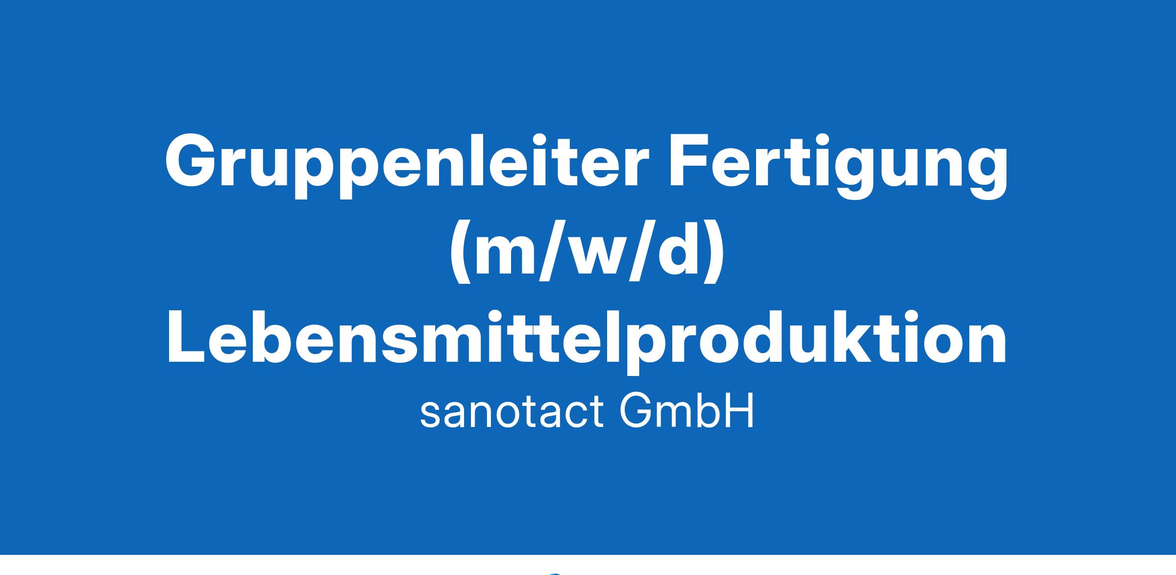 Your browser does not support the video tag. Komm in unser Team! sanotact ist ein internationaler Spezialanbieter für Nahrungsergänzungsmittel und Medizinprodukte sowie funktionelle Süßwaren wie Traubenzucker und Mints. Wir entwickeln, produzieren und vertreiben hochwertige Produkte, die die Gesundheit der Menschen positiv beeinflussen können. Das schaffen wir nur durch unsere engagierten MitarbeiterInnen, die jeden Tag ihr Bestes geben. Werde Teil unseres Teams und bewege etwas! Gruppenleiter Fertigung (m/w/d) Produktion & Fertigung / Unbefristet / Vollzeit Dein Einsatzgebiet: Führen, Motivieren und Weiterentwickeln der zugeordneten Mitarbeiter/-innen im Schichtbetrieb Gewährleistung der Produktionsprozesse hinsichtlich Effizienz, Kosten und Qualität Konzeption und Steuerung von Projekten in der kontinuierlichen Prozessoptimierung, Einführen neuer Produkte auf den Linien und Ausweiten der Produktionskapazitäten Personaleinsatzplanung in der Produktion Erfüllung der Anforderungen des IFS Food und des QM-Systems Einhaltung und Sicherstellung der Vorgaben zu Arbeits-, Umwelt- und Anlagensicherheit Das zeichnet Dich aus: Erfolgreich abgeschlossene handwerkliche oder technische Ausbildung Fundierte Berufserfahrung in der Produktion eines lebensmittelherstellenden Unternehmens, idealerweise erste Führungserfahrung eines Teams Sehr gute Kenntnisse der Produktionsabläufe Systematische und strukturierte Arbeitsweise, Flexibilität, Belastbarkeit Eigeninitiative und Selbstorganisation sowie die Fähigkeit Bestehendes zu hinterfragen Bereitschaft, Verantwortung zu übernehmen sowie Freude an der Führung und (Weiter-) Entwicklung eines Teams Gute Deutschkenntnisse in Wort und Schrift Gute ERP-Kenntnisse wünschenswert Darauf kannst Du Dich freuen Tarifvertrag NGG Süßwarentarif 30 Tage Urlaub + Heiligabend und Silvester frei 3 zusätzliche Urlaubstage für Umkleidezeiten Sondergratifikationen zur Weihnachts- und Urlaubszeit Eine betriebliche Altersvorsorge für eine abgesicherte Zukunft Kostenfreie Getränke wie Kaffee, Wasser und Tee Individuelle Weiterbildungsmöglichkeiten Ein gutes, familiäres Arbeitsklima, in dem du dich schnell wohlfühlen wirst JobBike Kostenlose Produkte für den Eigenbedarf Langfristige Arbeitssicherheit mit unbefristetem Vertrag Werde Teil unseres Teams! Bitte sende uns Deine aussagekräftigen Bewerbungsunterlagen mit Angaben Deiner Gehaltsvorstellung und Deines möglichen Eintrittstermins über unser Karriereportal. Bei Fragen steht Dir Dominic Lübker unter der Telefonnummer 0251 1421-116 oder per E-Mail gerne zur Verfügung. JETZT BEWERBEN Für Dich in der Leitung: