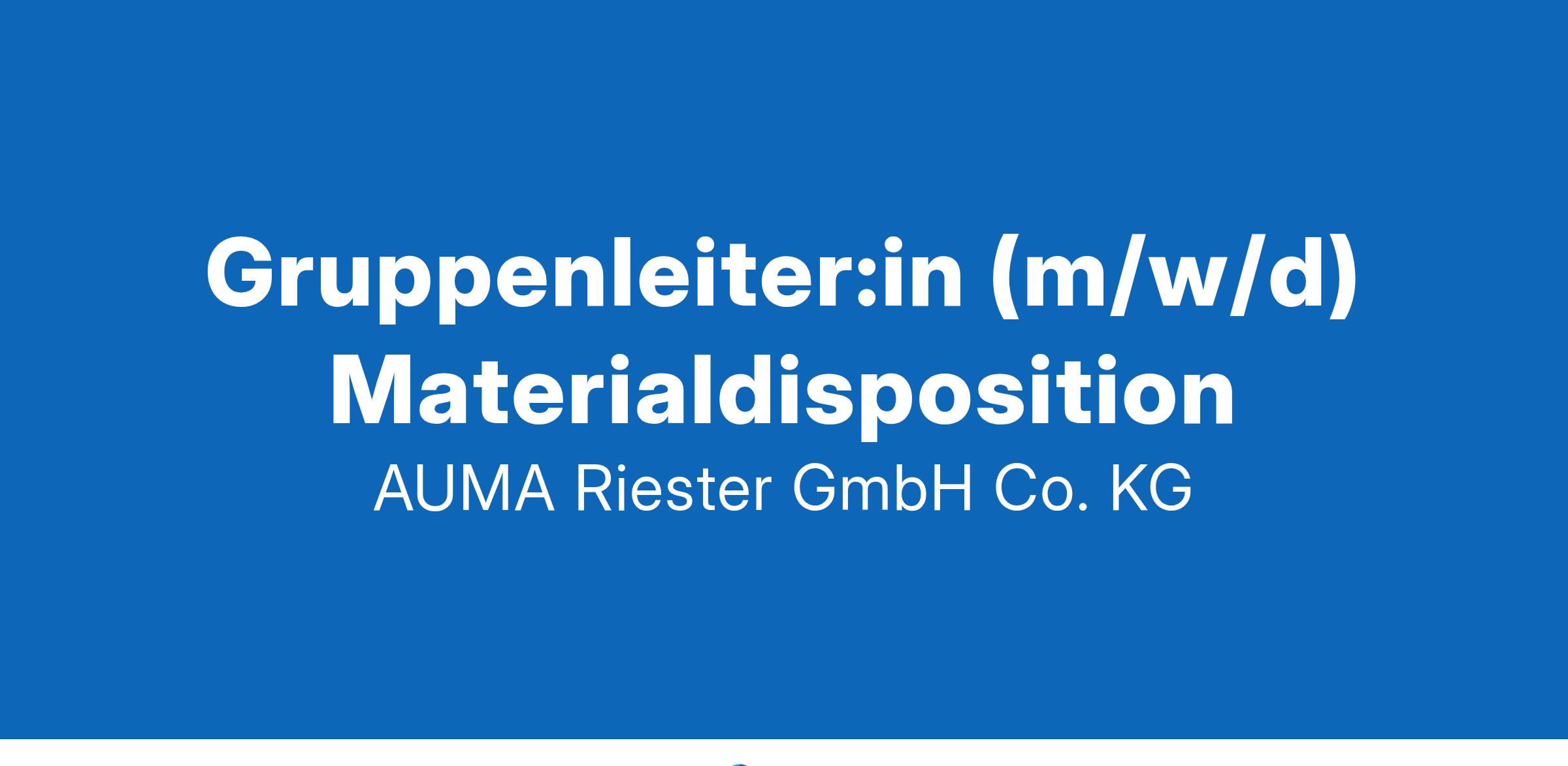 AUMA - ein innovatives, mittelständisches Familienunternehmen mit Hauptsitz in Müllheim i. M. - entwickelt, produziert und vertreibt seit 60 Jahren elektrische Stellantriebe und Armaturengetriebe für die verschiedensten Branchen wie z. B. Wasser- und Energiewirtschaft. Mit weltweit 2800 Mitarbeiter:innen zählt AUMA zu den Weltmarktführern. Wir sichern unsere Eigenständigkeit und Wettbewerbsfähigkeit durch innovative Lösungen auf allen Geschäftsfeldern. Wir engagieren uns für das Wohlergehen unserer Mitarbeiter:innen und übernehmen Verantwortung für die Gesellschaft mit Projekten für soziale, umwelttechnische und humanitäre Belange.Folgende Stelle möchten wir zum nächstmöglichen Zeitpunkt besetzen: Gruppenleiter:in m/w/d MaterialdispositionMüllheim i. M. bei Freiburg VollzeitBereich ProduktionWir suchen Sie als Führungskraft für die Leitung der Gruppe Materialdisposition in einer unserer Produktionseinheiten in Müllheim. In dieser verantwortungsvollen Position sind Sie für die fachliche und disziplinarische Führung von 8 Mitarbeiter:innen verantwortlich und zusammen mit Ihrem Team maßgeblich an der Sicherstellung der Materialverfügbarkeit und der Optimierung der Beschaffungsprozesse beteiligt. Ihre AufgabenSie übernehmen die Leitung der Gruppe Materialdisposition Sie verantworten die Disposition von elektronischen, mechanischen und elektromechanischen Einzelteilen und Baugruppen für mehrere Endproduktreihen Sie betreuen den Beschaffungsprozess auf operativer Seite Sie führen das Bestandsmanagement für die zugeordnete Produktionseinheit Sie verbessern und standardisieren kontinuierlich die Prozesse und Methoden der GruppeIhr ProfilStudienabschluss im kaufmännischen Bereich oder als Wirtschaftsingenieur/in bzw. entsprechende berufliche Erfahrungen. Berufserfahrung im Bereich Materialwirtschaft, Logistikmanagement oder eine adäquate Qualifikation sind wünschenswert Sehr gute Kenntnisse im Umgang mit MS-Office-Anwendungen und insbesondere in einem gängigen ERP-System Belastbarkeit, Kommunikationsstärke und Verantwortungsbewusstsein Fähigkeit, sich als Führungskraft im Team schnell zu etablieren Sehr gutes technisches Verständnis und ein hohes Maß an SelbstständigkeitIhre VorteileFlexible Arbeitszeiten Mobiles Arbeiten Jobticket und ausgezeichnete Verkehrsanbindung (Nähe Bahnhof) Parkplätze mit kostenloser Lademöglichkeit für E-Fahrzeuge Hervorragendes Betriebsrestaurant Betriebliches Gesundheitsmanagement (Hansefit, Ergonomische Arbeitsplätze, Teilnahme an Fitnessevents, u.v.m.) AUMA Zeitwertkonto AUMA Rente Individuelle Weiterbildungsmöglichkeit und Karrierechancen u.v.m.Interesse geweckt?Dann bewerben Sie sich jetzt und werden Sie Teil unseres Teams! Bitte senden Sie Ihre Bewerbungsunterlagen inkl. Gehaltsvorstellung und Kündigungsfrist per E-Mail an jobs@auma.com .HIER BEWERBEN Ansprechpartnerin Annika Kaldewey Telefon +49 7631 809-1896 | E-Mail jobs@auma.comAUMA Riester GmbH & Co. KG Aumastraße 1 79379 Müllheim Telefon +49 7631 809-0AUMA Riester GmbH & Co. KG https://files.relaxx.center/kcenter-google-postings/kc-10020/logo_google.png2025-02-16T21:59:59.999Z FULL_TIME EUR YEAR null2025-01-17 Müllheim i. M. bei Freiburg 79379 Aumastraße 147.8112791 7.598546799999999