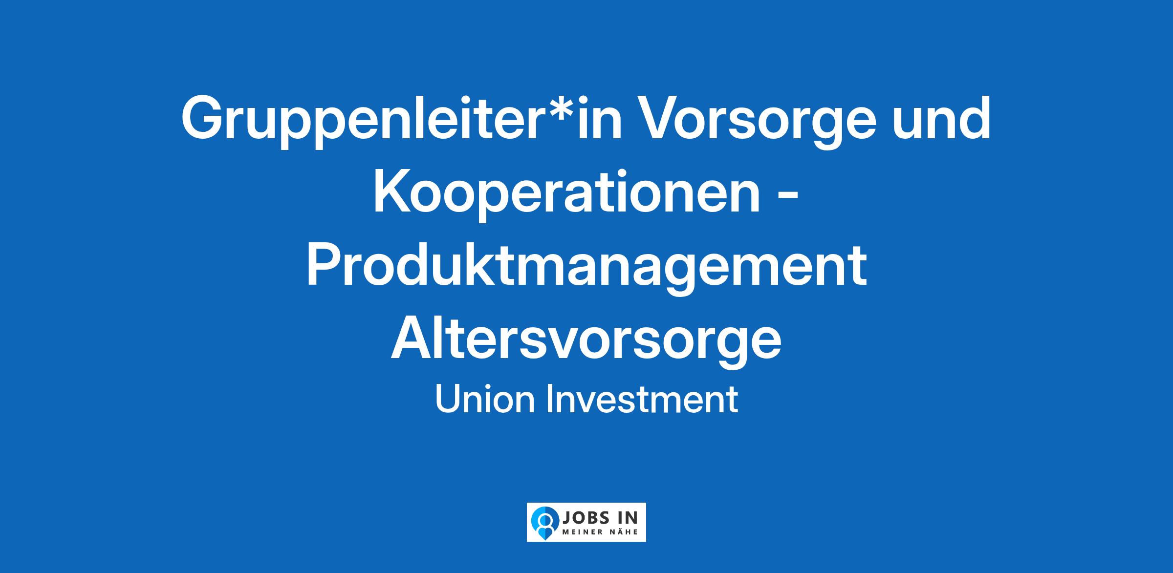 Union Investment ist bekannt für eine herausragende Expertise im Asset Management und damit eine der führenden Investmentfondsgesellschaften. Als Teil der Genossenschaftlichen FinanzGruppe bieten wir Privatpersonen sowie institutionellen Kunden seit 1956 zukunftssichere Anlagelösungen mit dem Zie... Gremium;Wirtschaft;Führung;Produktpalette;Markttrends;Umsetzungsstark;Versicherungswesen;Überzeugungskraft;Privatkunde;Finanzgruppe;Entwicklung;Digitale Strategie;Produktmanagement;Altersvorsorge;Teamleitung;Finanzwesen;Verantwortung;Innovation Original Stellenanzeige auf StepStone.de – Jetzt Jobagent bei StepStone einrichten und Traumjob finden! https://bit.ly/2KOagYD Mehr Informationen zu Arbeitgebern, Gehaltsdaten und Karrieretipps finden Sie auf StepStone.de