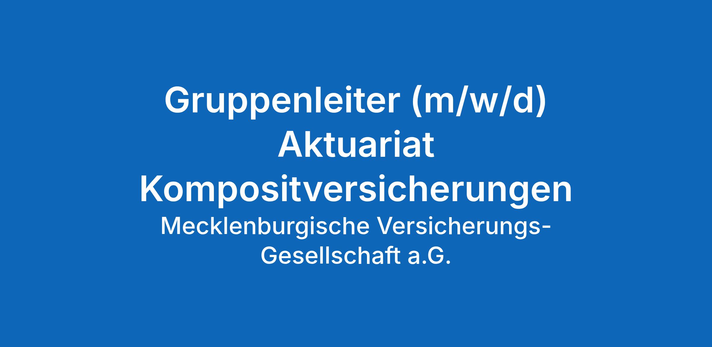 Wenn Sie Lust haben, die Zukunft der Mecklenburgischen Versicherung in einem sicheren, interessanten und verantwortungsvollen Arbeitsumfeld aktiv mitzugestalten, dann freuen wir uns auf Ihre Bewerbung!