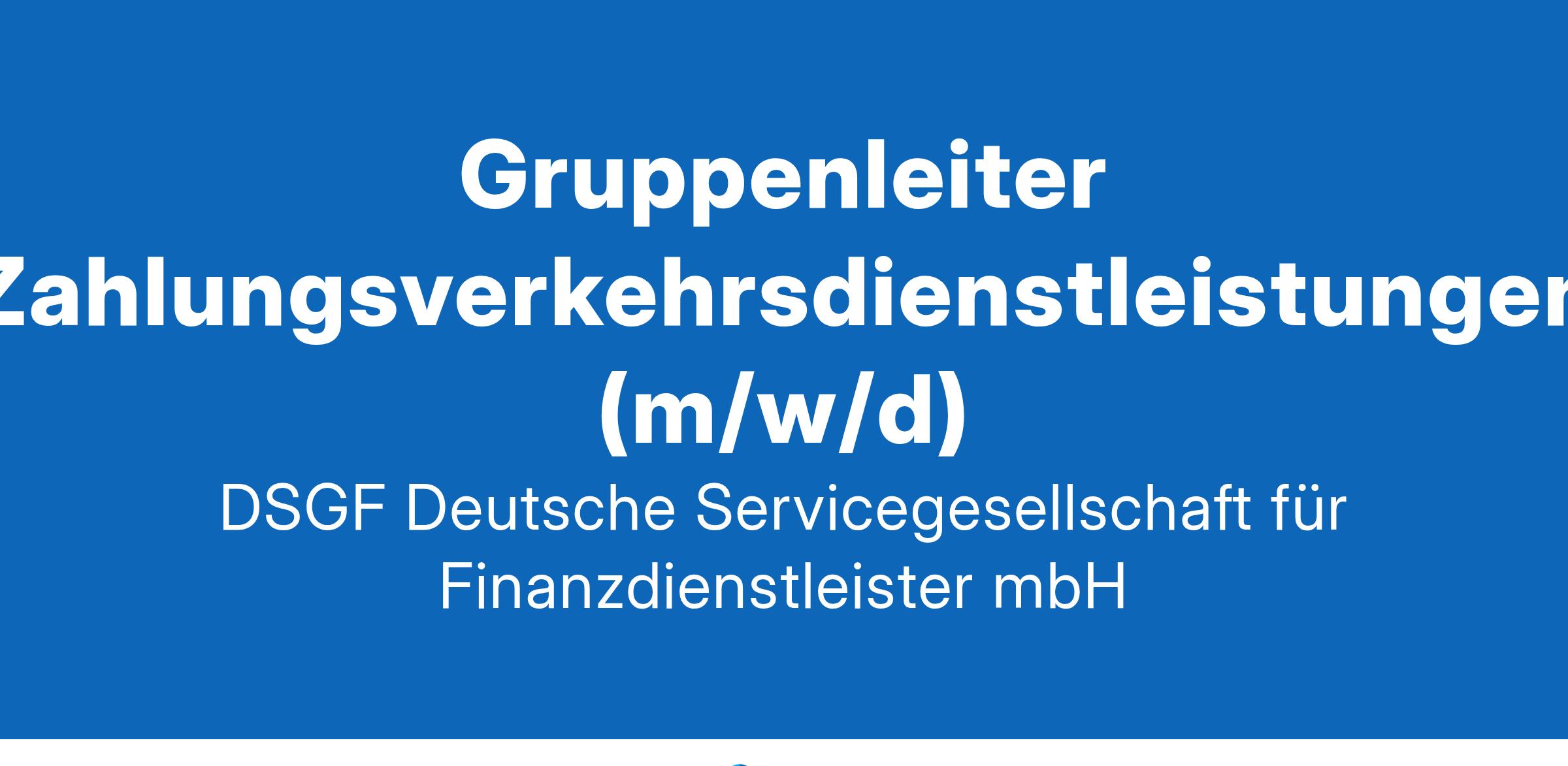 Gruppenleiter Zahlungsverkehrsdienstleistungen (m/w/d) Merseburg Vollzeit & Teilzeit | teilweise Home-Office | zum nächstmöglichen Zeitpunkt Wir von der Deutschen Servicegesellschaft für Finanzdienstleister mbH unterstützen die Sparkassen bei ihrer Mission allen Menschen den Zugang zu Finanzprodukten zu ermöglichen und tragen so unseren Teil für soziale Gerechtigkeit in Deutschland bei. Das erreichen wir, indem wir einen wichtigen Partner für modernes und intelligentes Outsourcing darstellen. Jeder unserer 1.900 Mitarbeitenden ist wichtig bei der Erfüllung dieses Ziels. Als wachsendes und dynamisches Unternehmen sind wir stolz auf unsere Kultur, denn bei uns wird offen kommuniziert und es herrschen kurze Entscheidungswege. Nicht grundlos sind wir für über 350 Institute über ganz Deutschland verteilt tätig. Sie sind kunden- und dienstleistungsorientiert und stehen neuen Herausforderungen offen gegenüber? Dann suchen wir Sie! Ihre Aufgaben bei uns Personalführung, -disposition und -entwicklung aller Mitarbeitenden der Gruppe Planung, Organisation, Koordination und Überwachung aller Arbeitsabläufe Sicherstellung der Arbeitsqualität und -leistung der Gruppe Analyse, Auswertung und Optimierung von Prozessen Führung von Feedbackgesprächen Durchführung von regelmäßigen Team- und Gruppenmeetings Steuerung der Einarbeitungsprozesse und bereichsinternen Schulungen Kontrolle der Einhaltung aller Arbeitsanweisungen und Qualitätsstandards Umsetzung von Entscheidungen der Geschäftsführung und der Bereichsleitung Fachliche/r Ansprechpartner:in intern und extern Was Sie mitbringen sollten Abgeschlossene kaufmännische Berufsausbildung, idealerweise im Sparkassen- oder Bankenumfeld , erfolgreich abgeschlossenes Studium oder eine vergleichbare Qualifikation mit Schwerpunkt Betriebswirtschaft Mindestens 3 Jahre Berufserfahrung mit Führungsaufgaben Gute Fachkenntnisse im Marktfolgebereich einer Bank Ausgeprägte Kommunikations-, Beratungs- und Sparrings-Kompetenz ,verbunden mit Durchsetzungsstärke Selbständige, strukturierte, zuverlässige Arbeitsweise, Hands-on- Mentalität und Flexibilität Was wir Ihnen bieten Einen sicheren und zukunftsorientieren Arbeitsplatz innerhalb der Sparkassen-Finanzgruppe Festanstellung in Vollzeit (39,5 Std./Wo.) oder Teilzeit nach Vereinbarung Flexible und familienfreundliche Arbeitszeitgestaltung (Work-Life-Balance) Arbeiten aus dem Home-Office in Teilen möglich 30 Urlaubstage + 2 Tage (Heiligabend/ Silvester) Zuschuss zu Fitnesskursen oder Urban Sports Club Mitgliedschaft Mitarbeitervergünstigungen bei verschiedenen Anbietern Gesundheitsvorsorge (Betriebsarzt) Bike-Leasing (JobRad) Moderner Dresscode Haben wir Ihr Interesse geweckt? Wir freuen uns auf Ihre Bewerbungsunterlagen unter Angabe Ihrer Gehaltsvorstellung und des frühestmöglichen Eintrittstermins über unser Online-Formular. Für Fragen steht Ihnen Frau Behringer (+49 221 9900 2080) gerne zur Verfügung. Standort: Köln Roland Breuer Recruiting 0221 9900-1623 | E-Mail Liljana Ristevska Recruiting 0221 9900-2073 | E-Mail Technische Probleme im Bewerbungsprozess PERBILITY GmbH 0800 7372454 (Mo-Fr 08:00 bis 17:00) E-Mail-Kontakt Impressum | Datenschutz | Barrierefreiheit