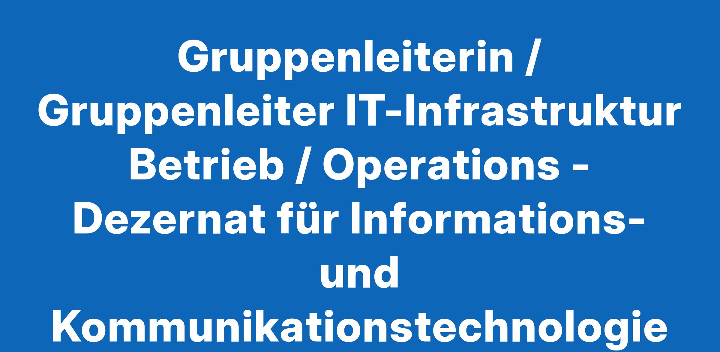 Gruppenleiterin / Gruppenleiter IT-Infrastruktur Betrieb / Operations - Dezernat für Informations- und Kommunikationstechnologie