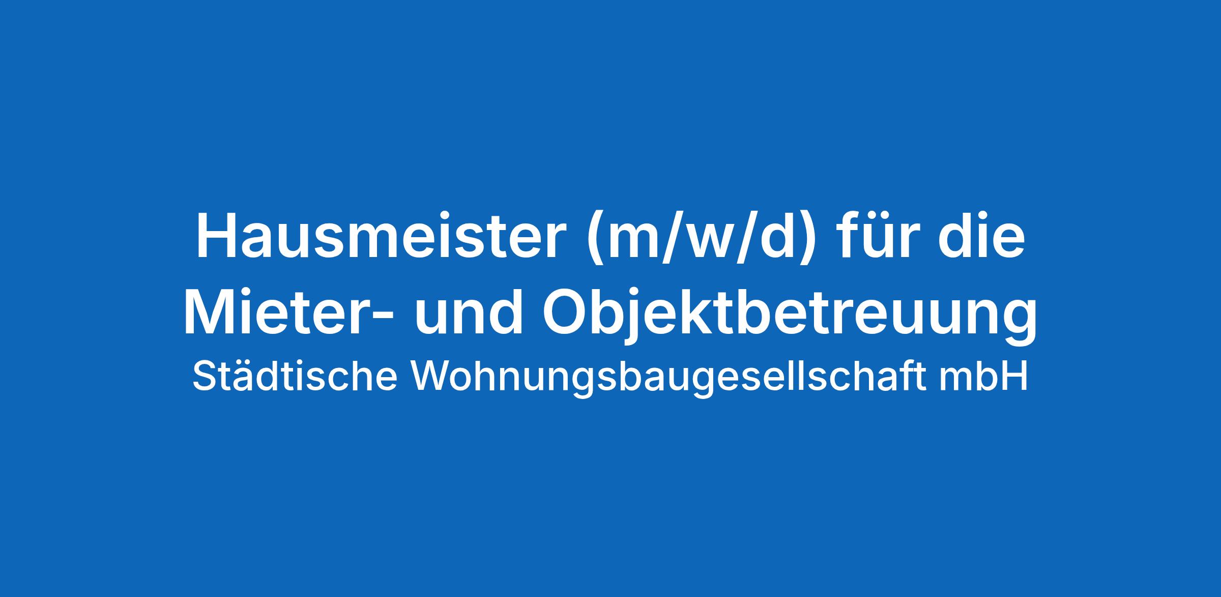 Hausmeister (m/w/d) für die Mieter- und Objektbetreuung
