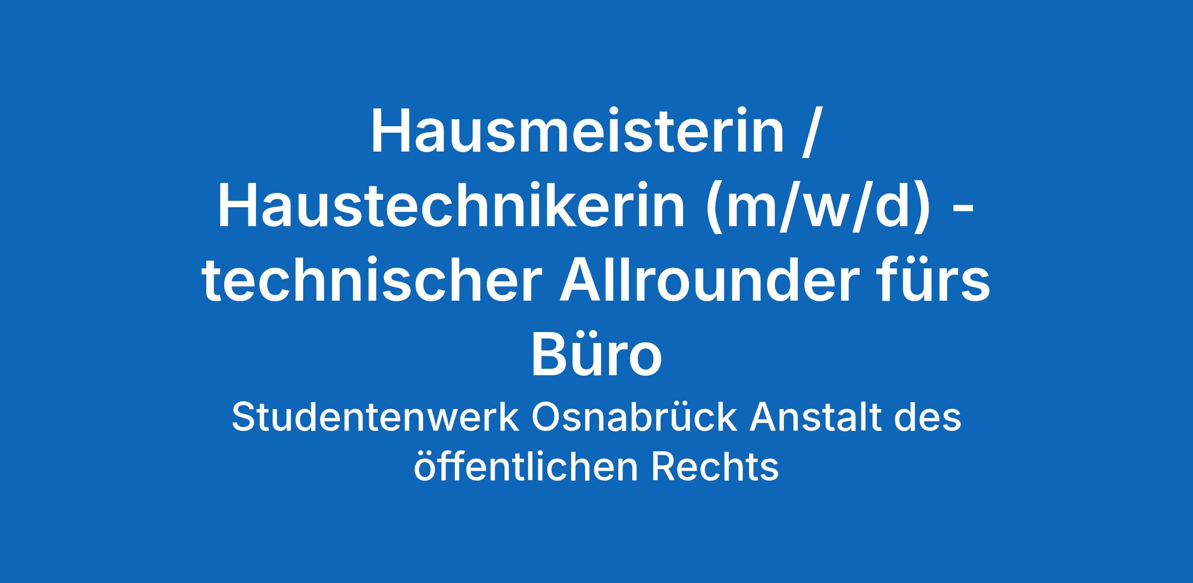 Das Studierendenwerk Osnabrück sucht zum nächstmöglichen Zeitpunkt am Standort Osnabrück: