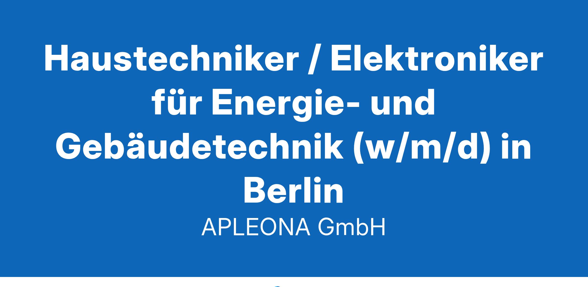 **Über uns:** Wir sind APLEONA – Wir realisieren Potential. Mit unseren nun über 40.000 Mitarbeitenden in über 30 Ländern gehören wir zu den führenden Dienstleistern im Gebäudemanagement. Mit dem Betrieb und Ausbau von Immobilien, der Wartung von Anlagen und integrierten Facility Services, wie z.B. der Reinigung, der Grünpflege und der Sicherheitsdienste, erleichtern wir täglich das Leben Tausender Menschen. Jobs mit Sinn und Herz, mit welchen Sie Ihr Potential entfalten können. Berlin , ab sofort Stellen-ID: 017885 Übernehmen Sie Verantwortung für den Betrieb und die Instandhaltung technischer Anlagen in einem festen Gebäude. Als **Haustechniker / Elektroniker für Energie- und Gebäudetechnik (w/m/d)** erwartet Sie eine abwechslungsreiche Tätigkeit in einem modernen Arbeitsumfeld mit attraktiven Konditionen. **Das machen Sie bei uns:** * Instandhaltung und Betrieb elektrotechnischer Anlagen im Gebäude * Behebung technischer Störungen sowie Durchführung von Kleinreparaturen * Dokumentation und Pflege von Fehler-, Prüf-, Wartungs- und Inspektionsberichten * Koordination von Fremdfirmen bei Wartungs- und Reparaturarbeiten **Das wünschen wir uns von Ihnen:** * Abgeschlossene Berufsausbildung im Bereich Elektrotechnik, Energie- und Gebäudetechnik oder Vergleichbares * Erste Erfahrungen im technischen Gebäudemanagement / Facility Management sind wünschenswert * Kundenorientierte Denkweise und eigenverantwortliches Arbeiten * Führerschein der Klasse B zur Nutzung des voll ausgestatteten Firmen-Servicewagens **Darauf können Sie sich freuen:** * Ein unbefristeter Vollzeitvertrag mit einer 40-Stunden-Woche * 30 Tage Urlaub sowie arbeitsfreie Tage an Weihnachten und Silvester * Ein vertraglich festgelegtes Weihnachtsgeld * Feste Zuständigkeit für ein Gebäude zur kontinuierlichen Optimierung * Ein hauseigener APLEONA-Tarifvertrag (IG BAU) * Betriebliche Altersvorsorge durch Entgeltumwandlung * Ein umfassendes Onboarding-Programm für Ihren optimalen Einstieg * Sonderkonditionen für Produkte und Dienstleistungen (inkl. Gympass und Corporate Benefits) sowie Prämien für Mitarbeiterempfehlungen * APLEONA-Weiterbildungsprogramme zur persönlichen und fachlichen Entwicklung * JobRad-Leasing für Ihre Mobilität und Fitness