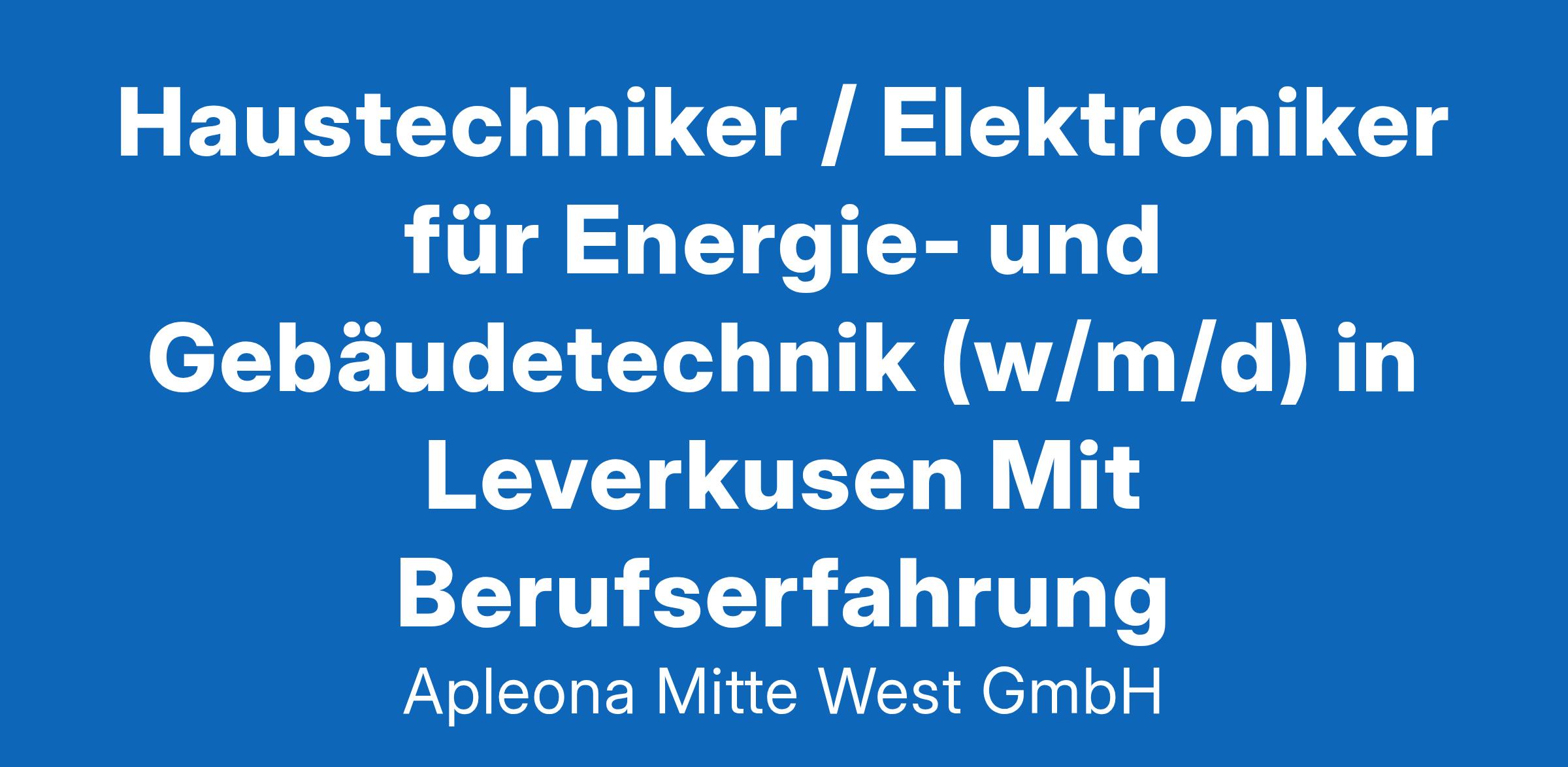 Verstärken Sie unser Team und gestalten Sie gemeinsam mit uns Ihre Zukunft! Wir – die **Apleona Mitte-West GmbH** – suchen für unseren Standort in **Leverkusen (51373)** **Haustechniker / Elektroniker für Energie- und Gebäudetechnik (w/m/d) in Leverkusen - JobID 20525** Übernehmen Sie Verantwortung für den Betrieb und die Instandhaltung technischer Anlagen in einem festen Gebäude. Als Haustechniker / Elektroniker für Energie- und Gebäudetechnik (w/m/d) erwartet Sie eine abwechslungsreiche Tätigkeit in einem modernen Arbeitsumfeld mit attraktiven Konditionen. **Das machen Sie bei uns:** * Instandhaltung und Betrieb elektrotechnischer Anlagen im Gebäude * Behebung technischer Störungen sowie Durchführung von Kleinreparaturen * Betreuung von versorgungstechnischen Anlagen mit gewerkeübergreifendem Fokus * Dokumentation und Pflege von Fehler-, Prüf-, Wartungs- und Inspektionsberichten * Koordination von Fremdfirmen bei Wartungs- und Reparaturarbeiten **Das bringen Sie mit:** * Abgeschlossene Berufsausbildung im Bereich Elektrotechnik, Energie- oder Gebäudetechnik * Erste Erfahrungen im technischen Gebäudemanagement oder Facility Management sind wünschenswert * Kenntnisse in gewerkeübergreifenden Bereichen von Vorteil * Kundenorientierte Denkweise und eigenverantwortliches Arbeiten **Darauf können Sie sich freuen:** * Ein unbefristeter Vollzeitvertrag mit einer 40-Stunden-Woche * 30 Tage Urlaub sowie arbeitsfreie Tage an Weihnachten und Silvester * Ein vertraglich festgelegtes Weihnachtsgeld * Feste Zuständigkeit für ein Gebäude zur kontinuierlichen Optimierung * Ein hauseigener APLEONA-Tarifvertrag (IG BAU) * Betriebliche Altersvorsorge durch Entgeltumwandlung * Ein umfassendes Onboarding-Programm für Ihren optimalen Einstieg * Sonderkonditionen für Produkte und Dienstleistungen (inkl. Gympass und Corporate Benefits) sowie Prämien für Mitarbeiterempfehlungen * APLEONA-Weiterbildungsprogramme zur persönlichen und fachlichen Entwicklung * JobRad-Leasing für Ihre Mobilität und Fitness **Interessiert? Werden Sie Teil unseres Teams!** Wir leben Vielfalt und Chancengleichheit. Wir freuen uns daher über alle qualifizierten Bewerbungen unabhängig von Geschlecht, ethnischer Herkunft, Religion, sexueller Orientierung, Alter oder etwaigen Beeinträchtigungen.
