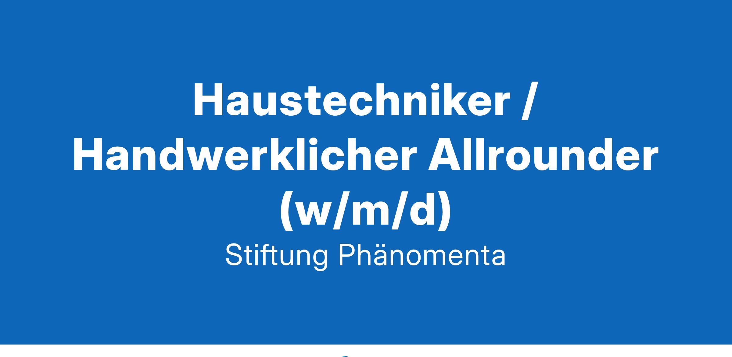 Unser Haus motiviert die Besucher zum Forschen und Spielen. Hier kann man mit allen Sinnen begreifen. Neben dem regulären Ausstellungsgeschäft gibt es eine Vielzahl von wissenschaftlichen und kulturellen Veranstaltungen. Ihre aufgaben: Reparatur und Pflege der Exponate der Ausstellung Bau und Überarbeitung von neuen Exponaten Durchführung kleinerer Unterhaltungs- und Instandsetzungsarbeiten am Gebäude Kontrolle der technischen Gewerke Koordination der Dienstleister und Begleitung von Fremdfirmen bei baulichen Maßnahmen Gewährleistung der Sicherheit, Ordnung und Sauberkeit des Grundstücks, der Ausstellung und des Gebäudes das bringen sie mit: abgeschlossene Berufsausbildung in einem handwerklichen oder technischen Beruf oder langjährige praktische Erfahrung als handwerklicher Allrounder erste Erfahrungen im technischen Gebäudemanagement wünschenswert gewerkeübergreifende Fachkenntnisse wünschenswert besucherorientierte Denkweise und eigenverantwortliches Arbeiten Flexibilität für gelegentliche Bereitschaftseinsätze (langfristig planbar) Teamfähigkeit Vollständige Bewerbung per Mail an