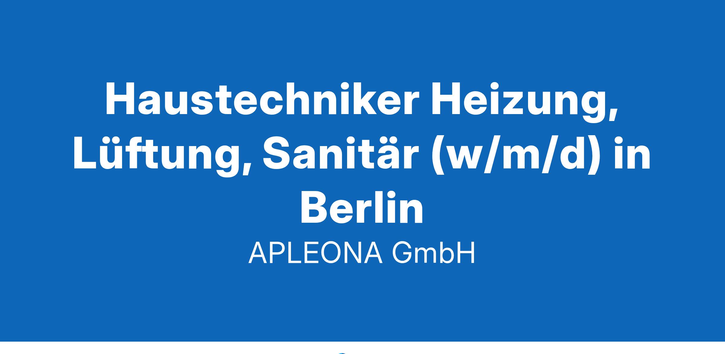Wir sind APLEONA – Wir realisieren Potential. Mit unseren nun über 40.000 Mitarbeitenden in über 30 Ländern gehören wir zu den führenden Dienstleistern im Gebäudemanagement. Mit dem Betrieb und Ausbau von Immobilien, der Wartung von Anlagen und integrierten Facility Services, wie z.B. der Reinigung, der Grünpflege und der Sicherheitsdienste, erleichtern wir täglich das Leben Tausender Menschen. Jobs mit Sinn und Herz, mit welchen Sie Ihr Potential entfalten können. Berlin ab sofort Stellen-ID: 017136 Als **Haustechniker (w/m/d) für Heizung, Lüftung und Sanitär** sind Sie dafür verantwortlich, dass ein festes Gebäude optimal betreut wird. Sie tragen durch Ihre Arbeit dazu bei, den Gebäudebetrieb reibungslos und effizient zu gestalten. **Das machen Sie bei uns:** * Betrieb und Instandhaltung der technischen Gebäudesysteme in den Bereichen Heizung, Lüftung und Sanitär * Störungsbedingte Instandsetzung und Durchführung von Kleinreparaturen * Gewerkeübergreifende Betreuung von versorgungstechnischen Anlagen * Führen und Pflegen von Fehler-, Prüf-, Wartungs- und Inspektionsberichten * Koordination von Fremdfirmen bei Wartungs- und Reparaturarbeiten **Das wünschen wir uns von Ihnen:** * Eine abgeschlossene Berufsausbildung in den Bereichen Heizungs-, Sanitär-, Klima- und Lüftungstechnik, Gas- und Wasserinstallation oder eine vergleichbare Qualifikation * Erste Erfahrungen im technischen Gebäudemanagement / Facility Management wünschenswert * Gewerkeübergreifende Fachkenntnisse wünschenswert * Eine kundenorientierte Denkweise und eigenverantwortliches Arbeiten **Darauf können Sie sich freuen:** * Ein unbefristeter Vollzeitvertrag mit einer 40-Stunden-Woche * 30 Tage Urlaub sowie arbeitsfreie Tage an Weihnachten und Silvester * Ein vertraglich festgelegtes Weihnachtsgeld * Feste Zuständigkeit für ein Gebäude, um kontinuierlich Verbesserungen zu erzielen * Ein hauseigener APLEONA-Tarifvertrag (IG BAU) * Betriebliche Altersvorsorge zur finanziellen Absicherung Ihrer Zukunft * Ein umfassendes Onboarding-Programm für einen erfolgreichen Einstieg * Sonderkonditionen für Produkte und Dienstleistungen (inkl. Gympass und Corporate Benefits) sowie Prämien für Mitarbeiterempfehlungen * APLEONA-Weiterbildungsprogramme für Ihre fachliche und persönliche Entwicklung * JobRad-Leasing für Ihre Mobilität und Fitness