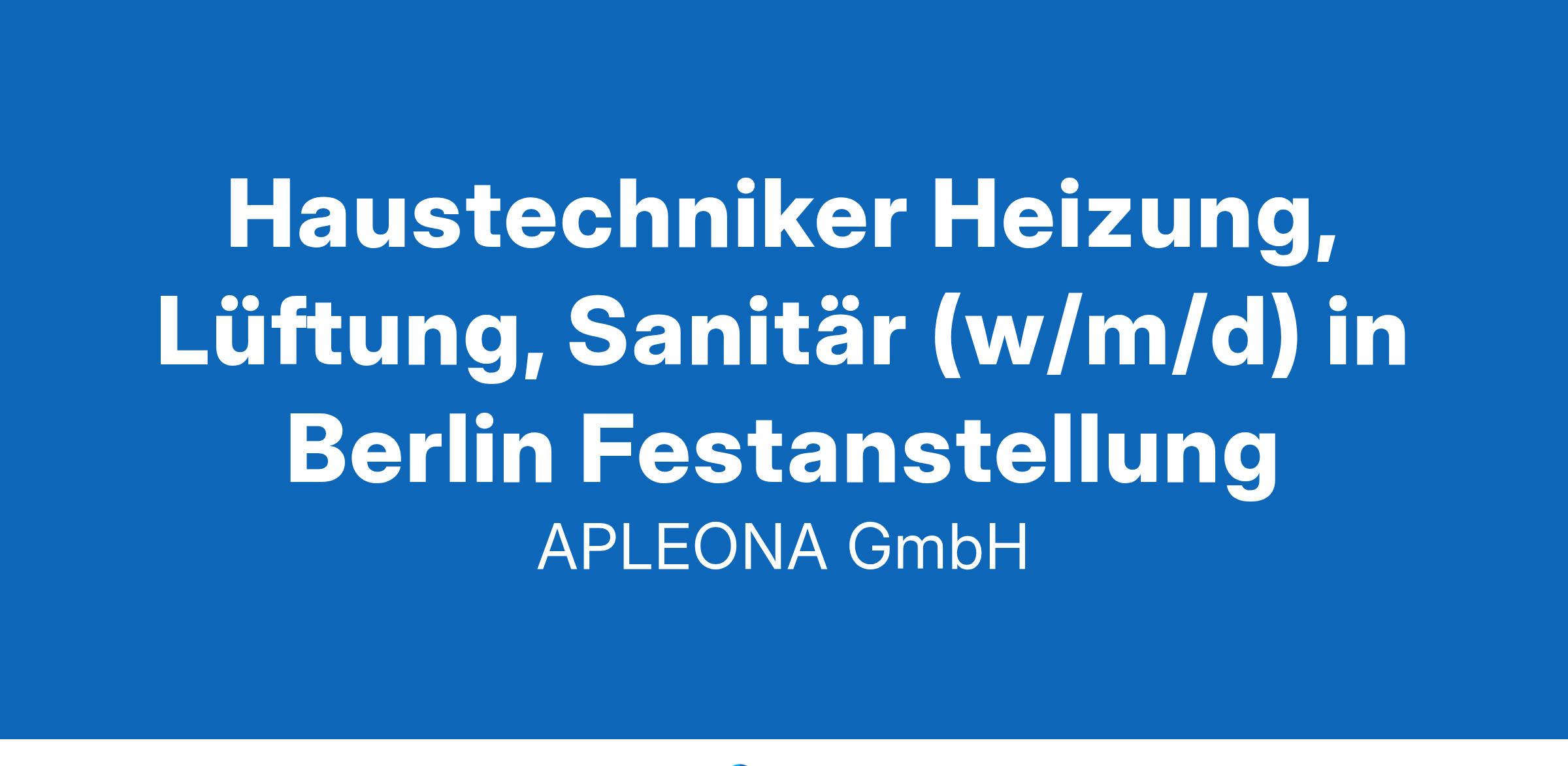 Wir sind APLEONA – Wir realisieren Potential. Mit unseren nun über 40.000 Mitarbeitenden in über 30 Ländern gehören wir zu den führenden Dienstleistern im Gebäudemanagement. Mit dem Betrieb und Ausbau von Immobilien, der Wartung von Anlagen und integrierten Facility Services, wie z.B. der Reinigung, der Grünpflege und der Sicherheitsdienste, erleichtern wir täglich das Leben Tausender Menschen. Jobs mit Sinn und Herz, mit welchen Sie Ihr Potential entfalten können. Berlin ab sofort Stellen-ID: 017136 Als **Haustechniker (w/m/d) für Heizung, Lüftung und Sanitär** sind Sie dafür verantwortlich, dass ein festes Gebäude optimal betreut wird. Sie tragen durch Ihre Arbeit dazu bei, den Gebäudebetrieb reibungslos und effizient zu gestalten. **Das machen Sie bei uns:** * Betrieb und Instandhaltung der technischen Gebäudesysteme in den Bereichen Heizung, Lüftung und Sanitär * Störungsbedingte Instandsetzung und Durchführung von Kleinreparaturen * Gewerkeübergreifende Betreuung von versorgungstechnischen Anlagen * Führen und Pflegen von Fehler-, Prüf-, Wartungs- und Inspektionsberichten * Koordination von Fremdfirmen bei Wartungs- und Reparaturarbeiten **Das wünschen wir uns von Ihnen:** * Eine abgeschlossene Berufsausbildung in den Bereichen Heizungs-, Sanitär-, Klima- und Lüftungstechnik, Gas- und Wasserinstallation oder eine vergleichbare Qualifikation * Erste Erfahrungen im technischen Gebäudemanagement / Facility Management wünschenswert * Gewerkeübergreifende Fachkenntnisse wünschenswert * Eine kundenorientierte Denkweise und eigenverantwortliches Arbeiten **Darauf können Sie sich freuen:** * Ein unbefristeter Vollzeitvertrag mit einer 40-Stunden-Woche * 30 Tage Urlaub sowie arbeitsfreie Tage an Weihnachten und Silvester * Ein vertraglich festgelegtes Weihnachtsgeld * Feste Zuständigkeit für ein Gebäude, um kontinuierlich Verbesserungen zu erzielen * Ein hauseigener APLEONA-Tarifvertrag (IG BAU) * Betriebliche Altersvorsorge zur finanziellen Absicherung Ihrer Zukunft * Ein umfassendes Onboarding-Programm für einen erfolgreichen Einstieg * Sonderkonditionen für Produkte und Dienstleistungen (inkl. Gympass und Corporate Benefits) sowie Prämien für Mitarbeiterempfehlungen * APLEONA-Weiterbildungsprogramme für Ihre fachliche und persönliche Entwicklung * JobRad-Leasing für Ihre Mobilität und Fitness