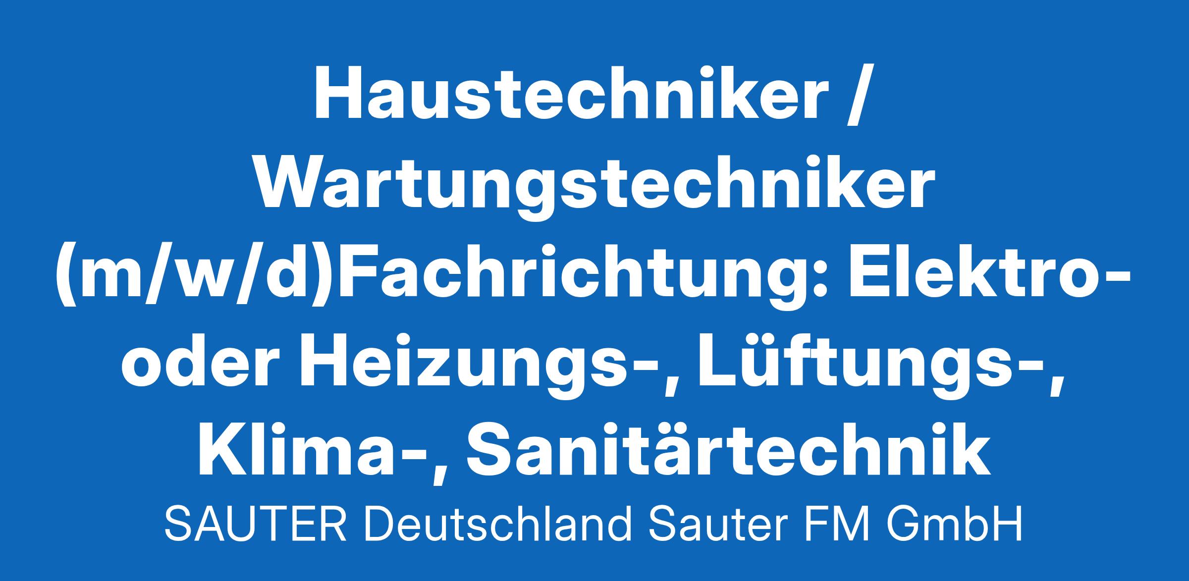 Haustechniker / Wartungstechniker (m/w/d)Fachrichtung: Elektro- oder Heizungs-, Lüftungs-, Klima-, SanitärtechnikKarlsruhe / Ettlingen, Mannheim