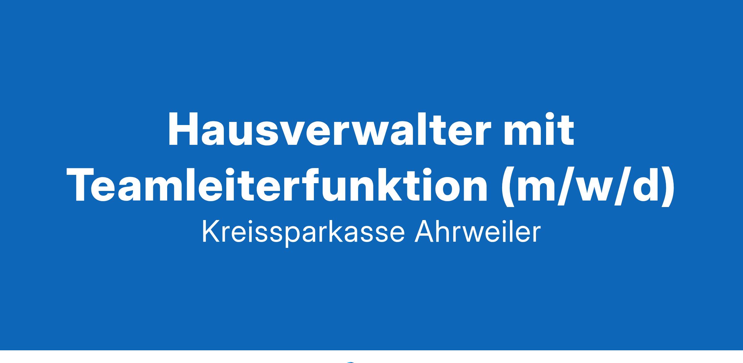 Als moderner und leistungsstarker Finanzdienstleister und Arbeitgeber im Kreis Ahrweiler sind wir mit einer Bilanzsumme von 2,7 Mrd. Euro und 19 Geschäftsstellen Marktführer in unserem Geschäftsgebiet. Seit 160 Jahren sind wir tief in unserer Heimatregion verwurzelt und fördern zahlreiche gesellschaftliche Aktivitäten in den Bereichen Sport, Kunst und Jugendarbeit. Diese herausragende Position möchten wir mit unseren 385 motivierten Mitarbeiterinnen und Mitarbeitern weiter ausbauen und suchen zur Unterstützung unseres Teams zum nächstmöglichen Zeitpunkt für unseren Bereich der S-Finanzdienste einen Hausverwalter mit Teamleiterfunktion (m/w/d) Wir bieten: Eine durch Wertschätzung und Kollegialität geprägte familiäre Unternehmenskultur Eine nachhaltige Unterstützung bei der fachlichen Fort- und Weiterbildung bei voller Kostenübernahme Flexible Arbeitszeitgestaltung (u.a. Urlaubsankauf, Homeoffice, Gleitzeit, Jahresarbeitszeitkonto) und 32 Tage Urlaub Modernste technische Ausstattung, kostenfreie Parkplätze sowie zahlreiche attraktive Mitarbeiterkonditionen 13,8 Gehälter nach TVöD-S Vertriebliche Bonuszahlungen, umfangreiche Sozialleistungen und eine arbeitgeberfinanzierte betriebliche Altersvorsorge Einen sicheren und langfristigen Arbeitsplatz innerhalb eines erfolgreichen Unternehmens Ihre Aufgaben: Eigenverantwortliche Verwaltung eines Bestandes im Bereich WEG- und Mietverwaltung Anbahnen und Abschluss von Miet- und Verwalterverträgen Planung, Organisation und Leitung von Eigentümerversammlungen Überwachung und Durchführung von Versammlungsbeschlüssen Betreuung von Instandhaltungs- sowie Instandsetzungsmaßnahmen Bearbeitung von Schadens- und Versicherungsfällen Überwachen und Buchen von Zahlungsvorgängen (Objektbuchhaltung) Kontrolle der WEG-Jahresabrechnungen und Betriebskostenabrechnungen in der Mietverwaltung Steuerung und Kontrolle der Dienstleister und Handwerker vor Ort Nachhaltige Erweiterung des Verwaltungsportfolios Kontinuierliche Optimierung der internen Prozesse und Systeme Korrespondenz mit Eigentümern, Mietern, Rechtsanwälten, Behörden, Versicherungen sowie externen Dienstleistern Führungsverantwortung für das Team der Hausverwalter der S-Finanzdienste Ihr Profil: Erfolgreich abgeschlossene Ausbildung als Immobilienkauffrau/-mann oder vergleichbare Qualifikation Langjährige Erfahrung im Bereich der WEG- und Mietverwaltung Verhandlungssichere Kenntnisse im WEG- und Mietrecht Sie verfügen idealerweise bereits über Führungserfahrung Idealerweise Erfahrungen mit Verwaltungsprogramm Haufe PowerHaus Ausgezeichnete Kommunikations- und Organisationsfähigkeit Sicheres und kompetentes Auftreten Die Möglichkeit zur Bewerbung sowie weitere Informationen zur ausgeschriebenen Stelle finden Sie über unser Karriereportal auf Hausverwalter mit Teamleiterfunktion (m/w/d) sowie über den Leiter der S-Finanzdienste, Herrn Stuntz (Tel.: 02641/380-5410, Email: sascha.stuntz[AT]ksk-ahrweiler.de). Wir freuen uns über Ihre Bewerbung mit Angabe des möglichen Eintrittstermins und Ihrer Gehaltsvorstellung bis zum 03. März 2025.