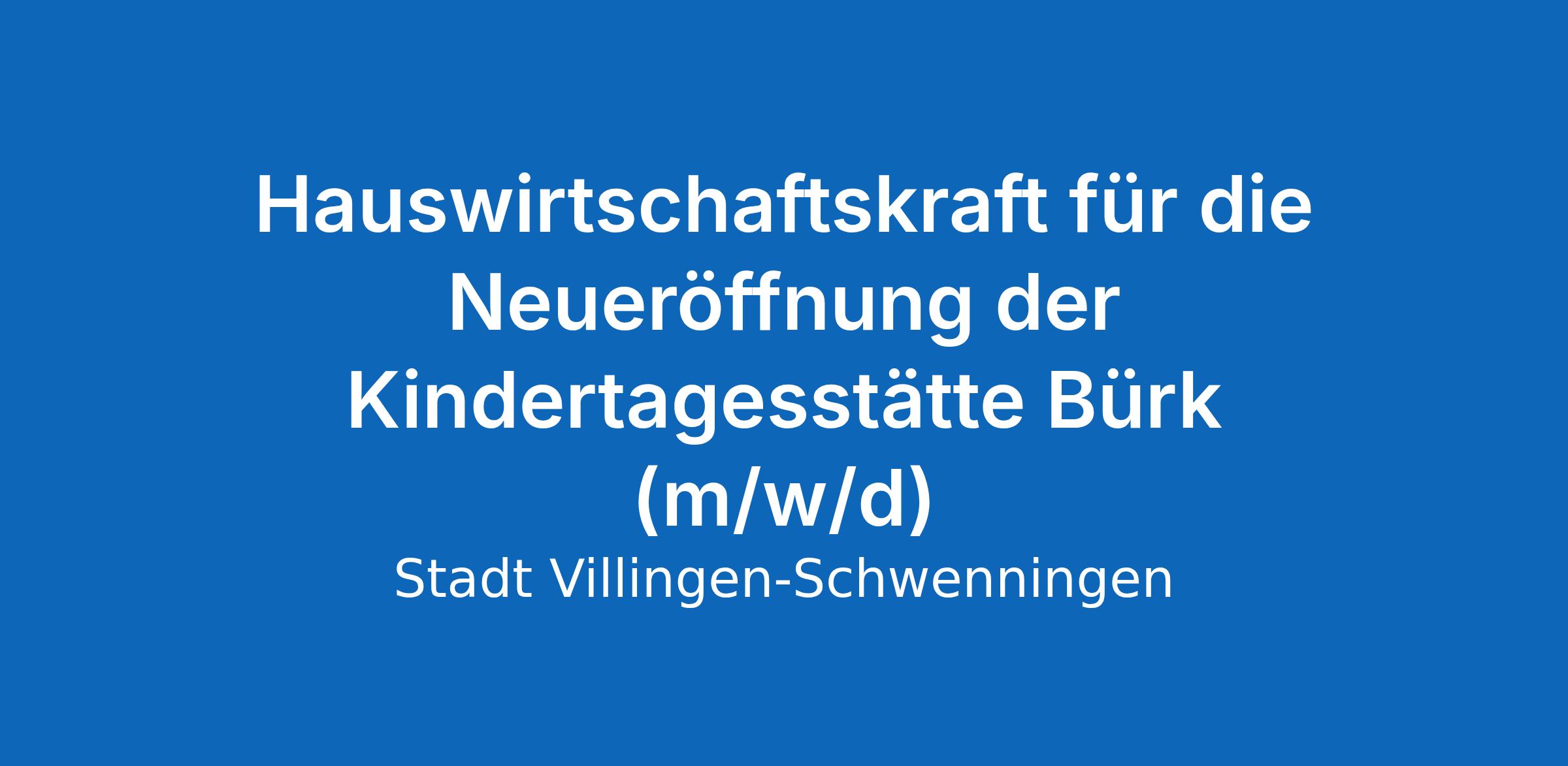Hauswirtschaftskraft für die Neueröffnung der Kindertagesstätte Bürk (m/w/d)