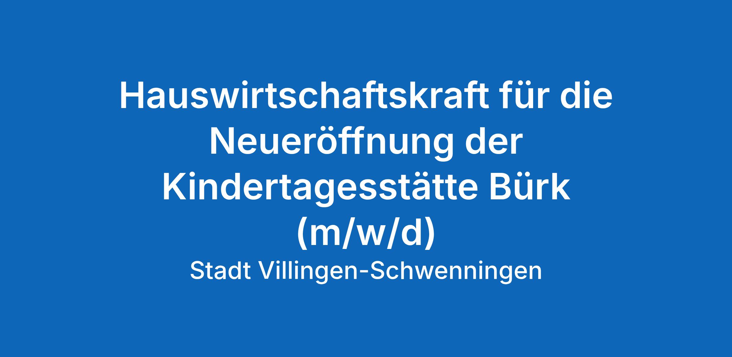 Hauswirtschaftskraft für die Neueröffnung der Kindertagesstätte Bürk (m/w/d)