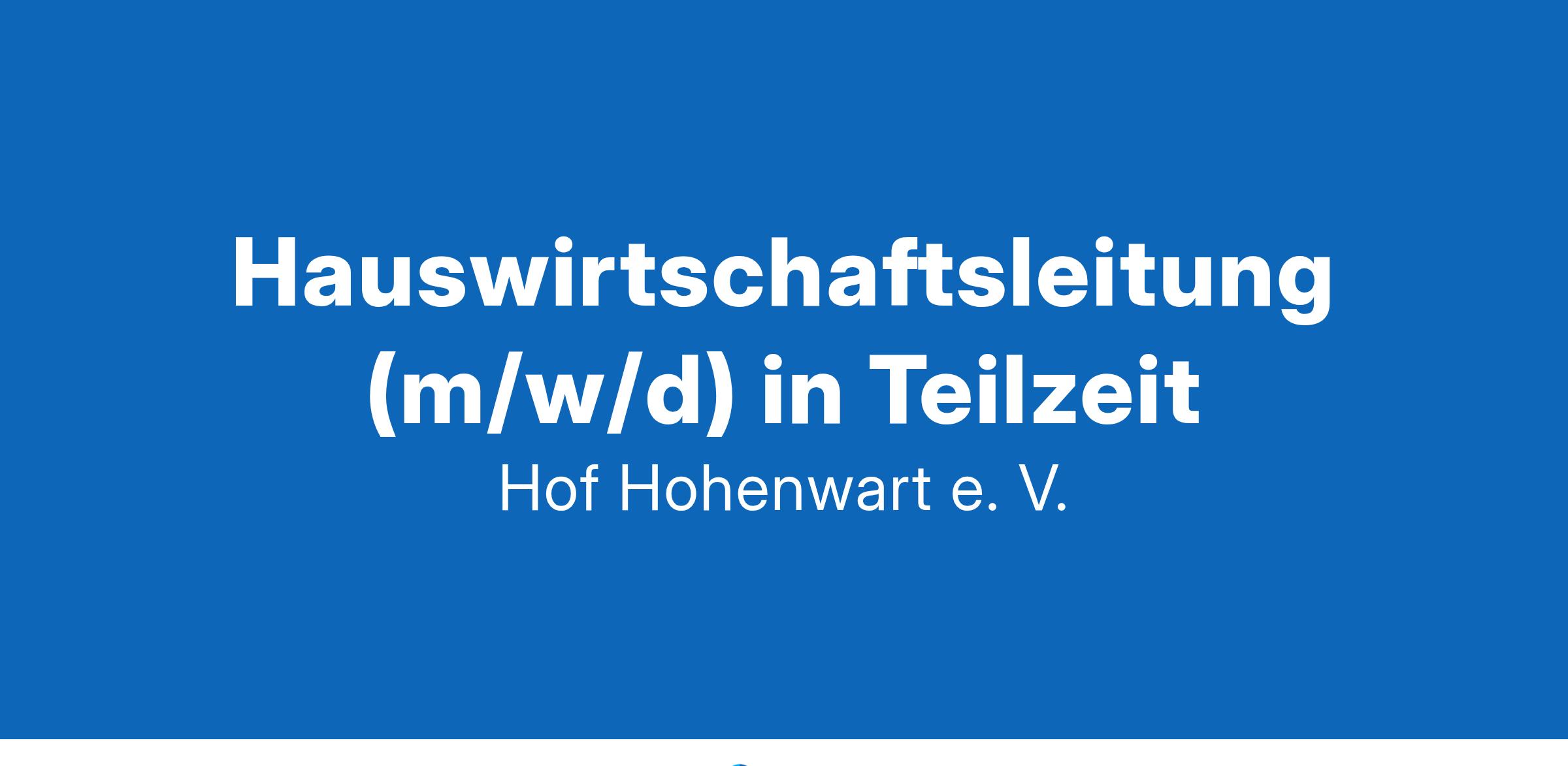 in Teilzeit (25 – 35 Std./Woche) ab sofort: Hauswirtschaftsleitung (m/w/d) Der Hof Hohenwart e.V. ist ein eigenständiger