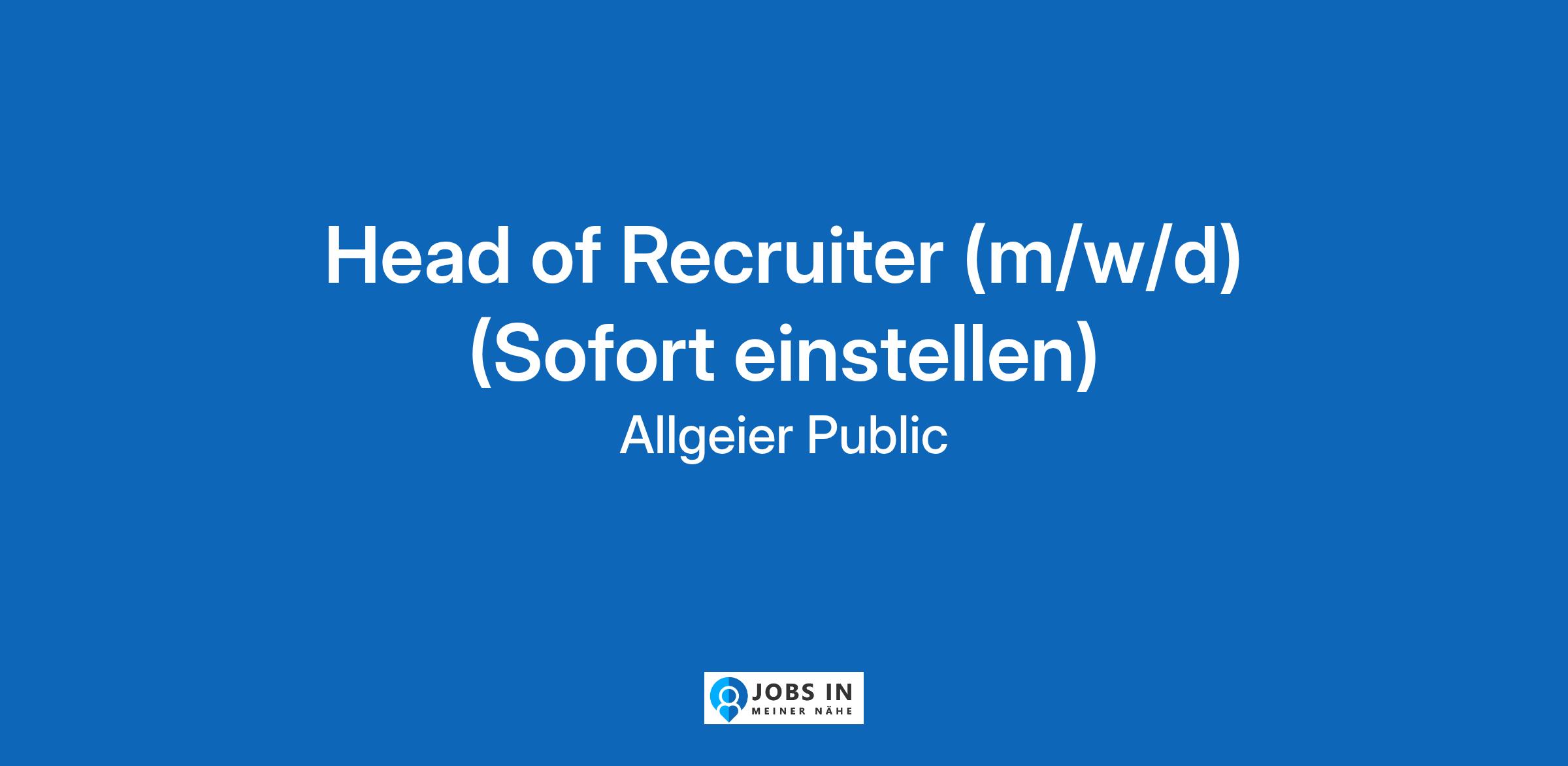 Kommen Sie zu Allgeier Public und entwickeln Sie mit uns die Zukunft Deutschlands! Wir suchen ab sofort einen Head of Recruiter (m/w/d) am Standort Wiesbaden oder Dsseldorf.