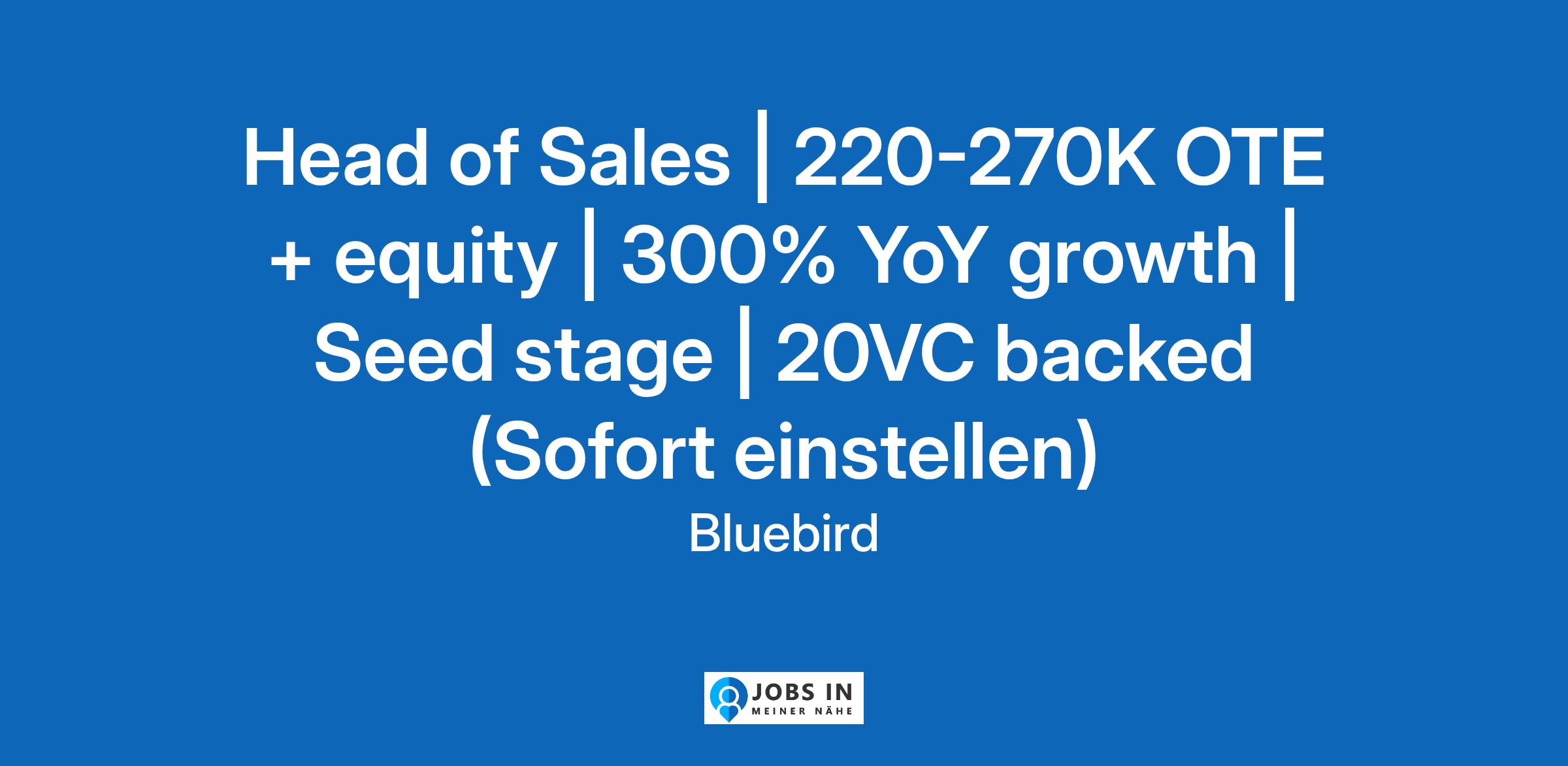 Head of Sales | 220 - 270K OTE (50/50 or 60/40) + equity | Seed stage | 300% YoY