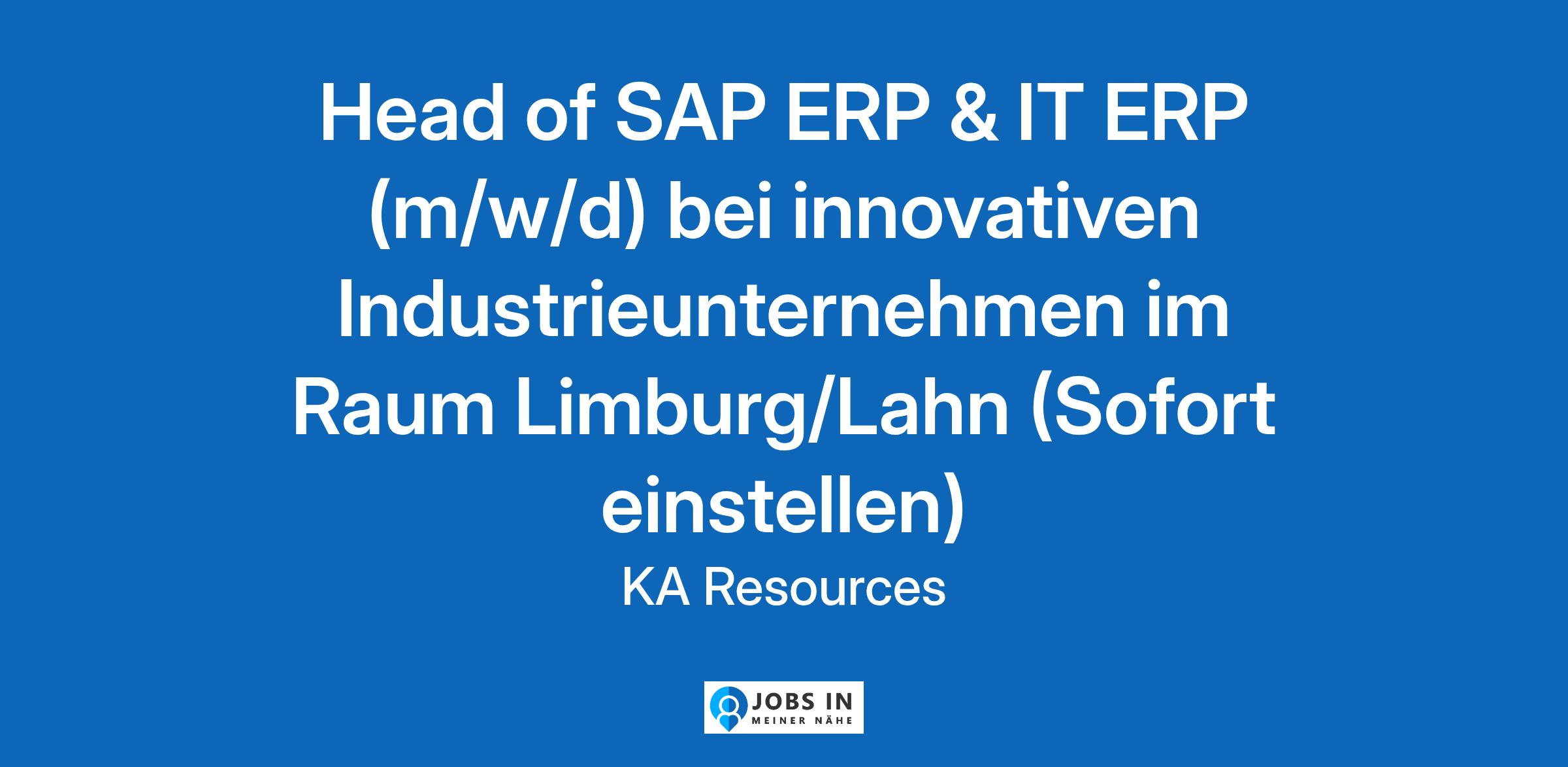 Ein marktfhrendes internationales Industrieunternehmen sucht eine/n Head of SAP ERP & IT ERP. Das Unternehmen ist bekannt fr Qualitt, Integritt und Kundennhe. Mit rund 1.100 Mitarbeitenden an mehr als 20 Standorten weltweit legt es Wert auf Umweltschutz, Nachhaltigkeit, Teamgeist und persnliche Weiterentwicklung der Mitarbeiter. Die Position wird in der Zentrale besetzt und umfasst internationale Projekte im Umfeld von SAP ERP und weiteren ERP-Systemen.