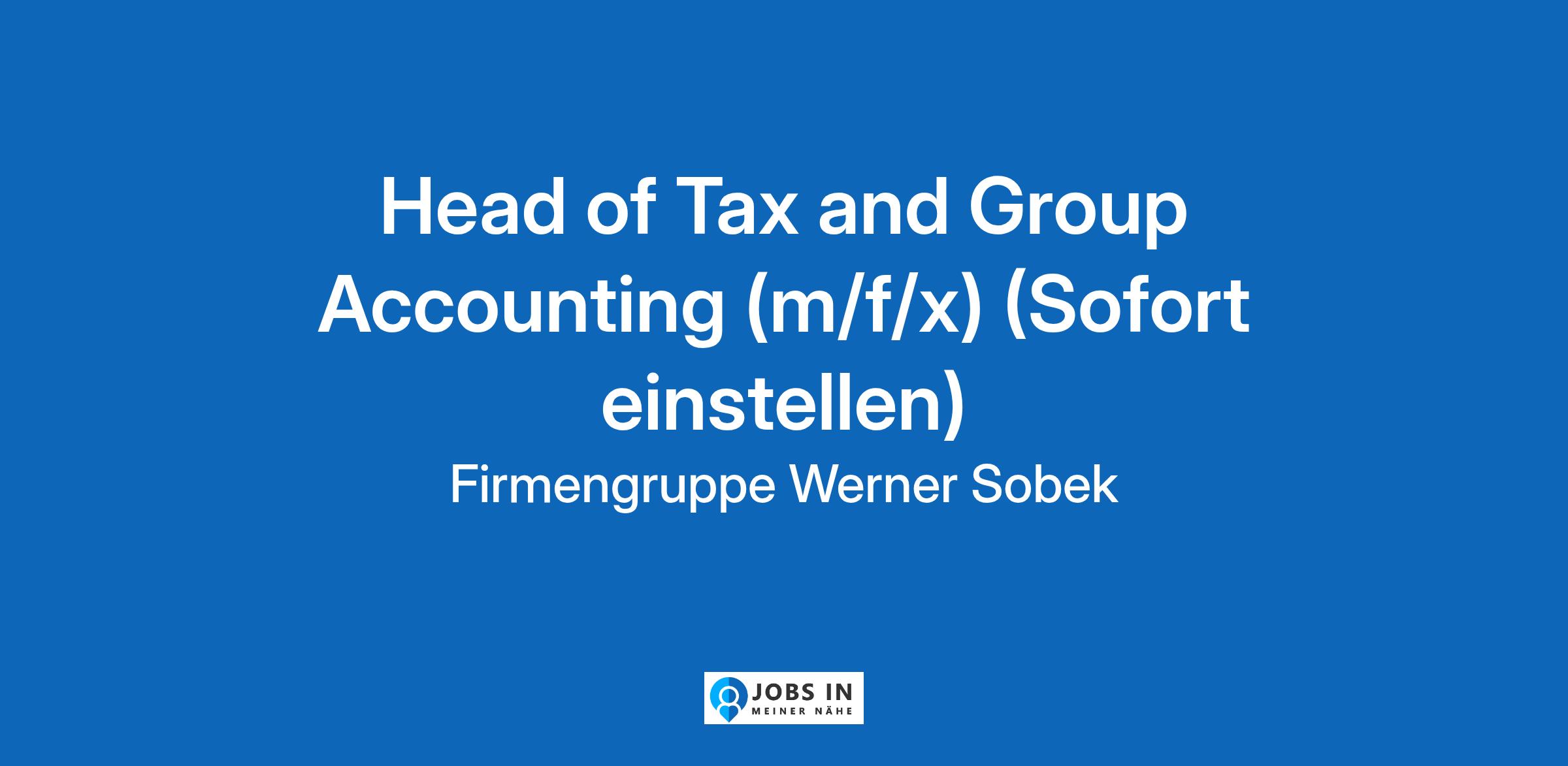 Head of Tax and Group Accounting (m/f/x) (Sofort einstellen)