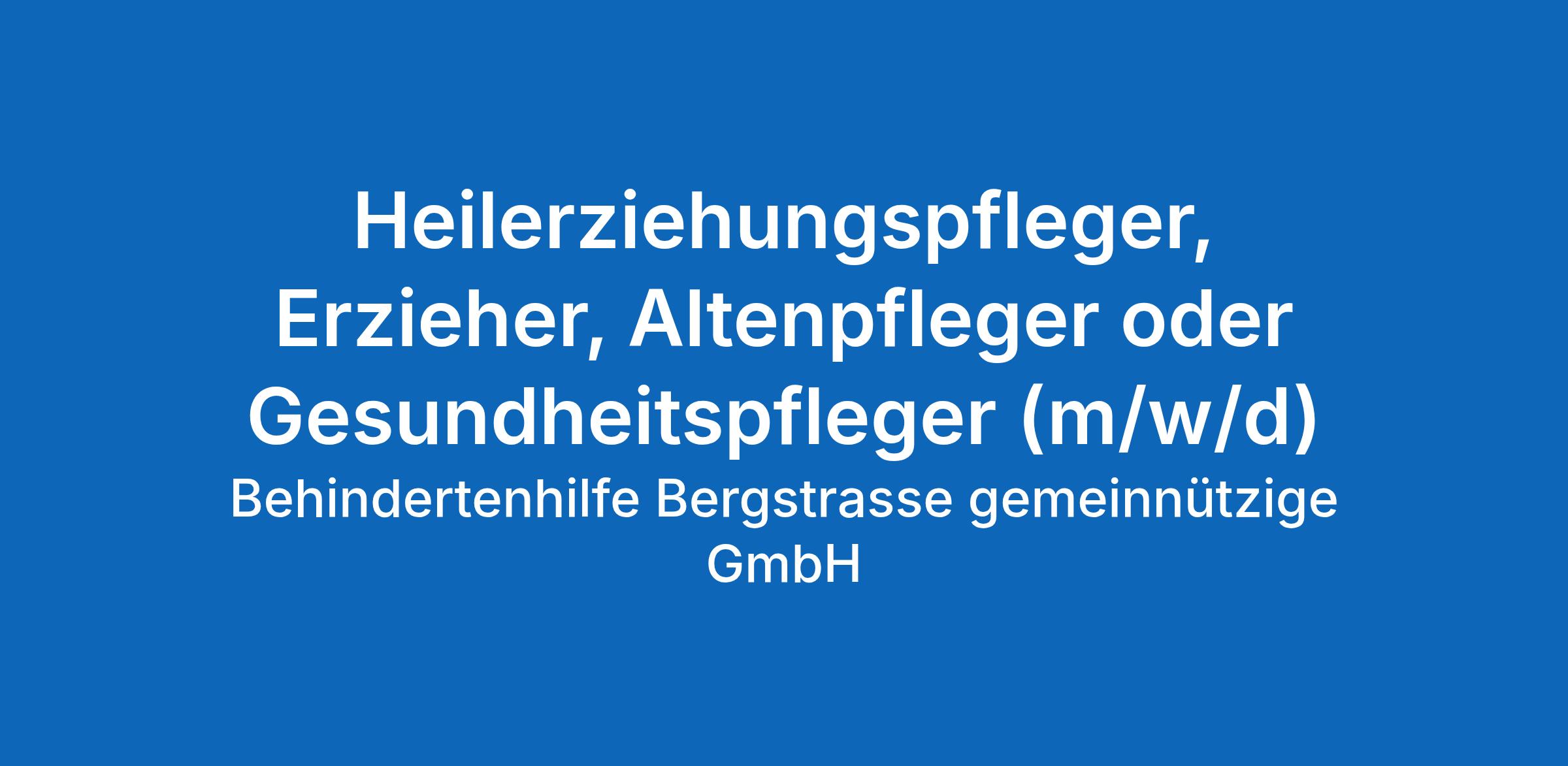 Heilerziehungspfleger, Erzieher, Altenpfleger oder Gesundheitspfleger (m/w/d)