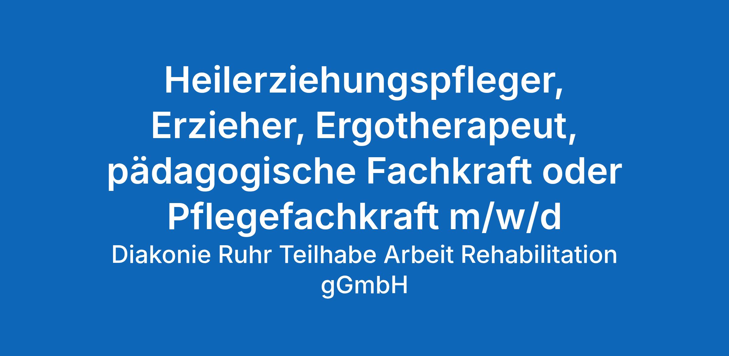 Wir suchen ab sofort einen Heilerziehungspfleger (m/w/d), Erzieher (m/w/d), Ergotherapeut (m/w/d), pädagogische Fachkraft (m/w/d) oder Pflegefachkraft (w/m/d) für das Stellwerk, dem Intensivpädagogischen Assistenzbereich der Werkstatt Constantin-Bewatt. Die Anstellung erfolgt zunächst befristet für 12 Monate für 39 Wochenstunden.