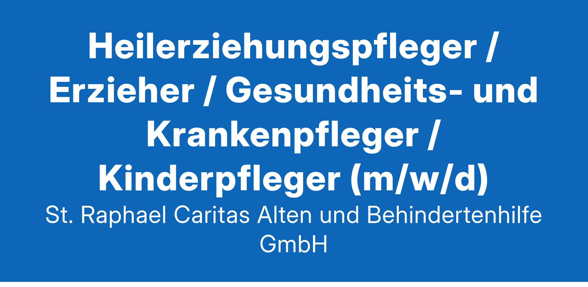Die St. Raphael Caritas Alten- und Behindertenhilfe ist einer der größten sozialen Dienstleister im nördlichen Rheinland-Pfalz. In unserem gemeinnützigen Unternehmen engagieren sich über 1.400 Mitarbeitende an 40 Standorten in den Landkreisen Ahrweiler, Bernkastel-Wittlich, Cochem-Zell und Mayen-Koblenz. Für unsere Einrichtung Maria Grünewald in Wittlich suchen wir Sie zum nächstmöglichen Zeitpunkt als Heilerziehungspfleger / Erzieher / Gesundheits- und Krankenpfleger / Kinderpfleger (m/w/d) in Teilzeit oder Vollzeit. Ihre Aufgaben: Qualifiziert, herzlich und teilhabeorientiert begleiten Sie Kinder und Jugendliche mit geistigen und körperlichen Behinderungen sowie unterschiedlichen Unterstützungsbedarfen in deren Wohn- und Lebensalltag. Sie setzen individuelle Förderkonzepte, Alltags- und Freizeitgestaltung für unsere jungen Bewohnerinnen und Bewohner um. Sie arbeiten kooperativ mit Angehörigen und externen Partnern zusammen. Sie arbeiten teamorientiert in einem multiprofessionellen Gesamtteam. Sie übernehmen Planungs- und Dokumentationsaufgaben. Sie arbeiten im Schichtsystem ohne Nachtdienst, auch an Wochenenden und Feiertagen. Ihr Profil: Sie haben eine abgeschlossene Berufsausbildung zum Erzieher, Heilerziehungspfleger, Gesundheits- und Krankenpfleger, Sozialpädagogen, Heilpädagogen, Kinderpfleger oder Vergleichbares (m/w/d). Sie bringen Einfühlungsvermögen und eine wertschätzende Haltung sowie Freude an der Arbeit mit den zu assistierenden Kindern und Jugendlichen mit. Sie arbeiten organisiert und eigenverantwortlich. Unser Angebot: Teilzeit- oder Vollzeitstelle (19-39 Stunden pro Woche) Sicherer Arbeitsplatz in einem zukunftssicheren Unternehmen Tarifliche Vergütung nach AVR-Caritas sowie eine Jahressonderzahlung Betriebliche Altersvorsorge (KZVK) Mindestens 30 Tage Urlaub im Jahr sowie 2 weitere Regenerationstage Fort- und Weiterbildungsmöglichkeiten Auszahlung von Prämien für die erfolgreiche Anwerbung neuer Mitarbeitender Betriebliches Gesundheitsmanagement Dienstradleasing Neugierig geworden? Dann bewerben Sie sich, wir freuen uns auf Sie! Auskünfte vorab erteilt Ihnen gerne Andrea Schieben unter Telefon 06571 695201. Wir freuen uns auf Ihre Bewerbung über unser Karriereportal. St. Raphael Caritas Alten- und Behindertenhilfe GmbH Personalentwicklung und Recruiting Am Flugplatz 21 56743 Mendig www.st-raphael-cab.de