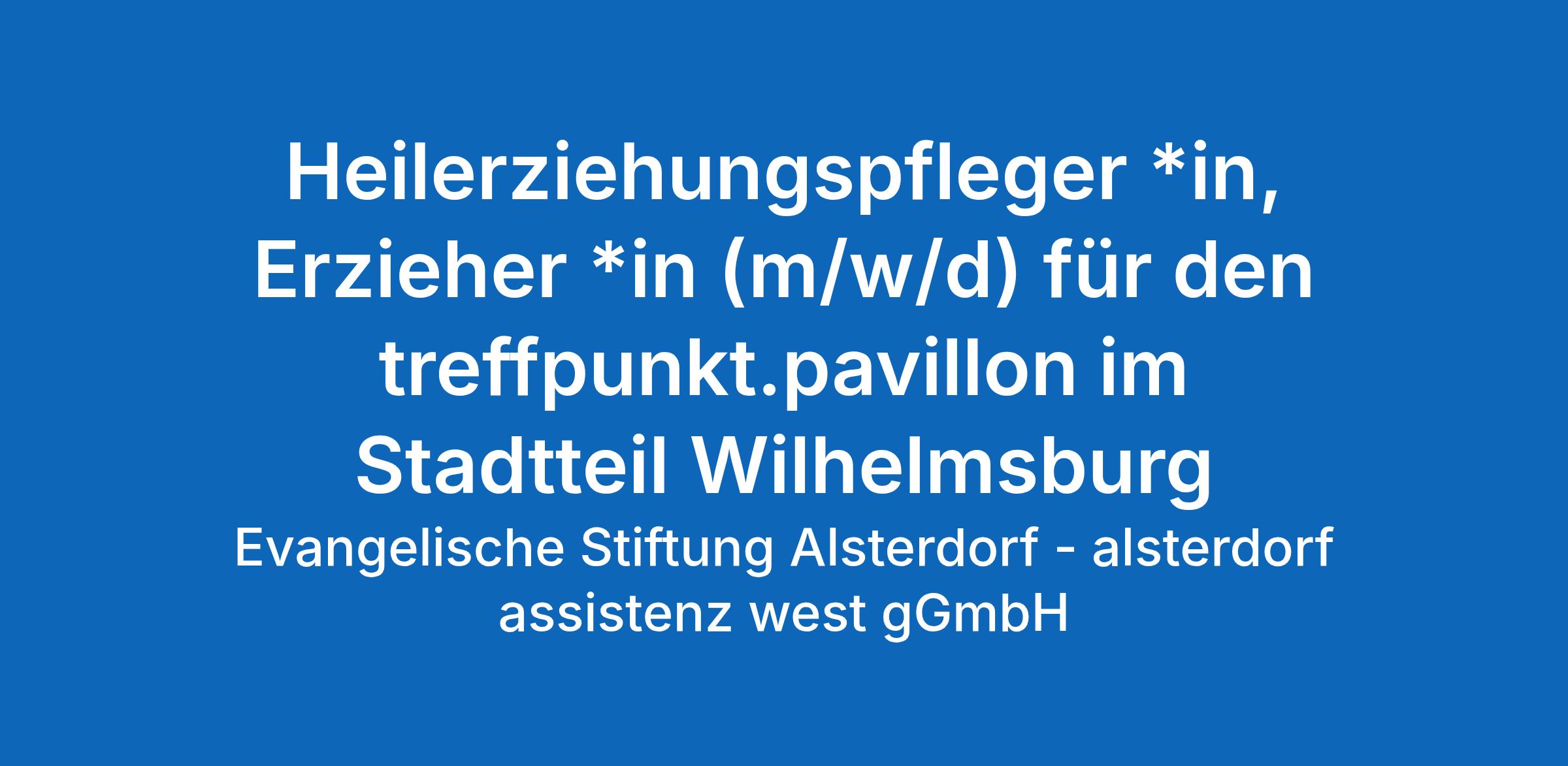 Heilerziehungspfleger *in, Erzieher *in (m/w/d) für den treffpunkt.pavillon im Stadtteil Wilhelmsburg