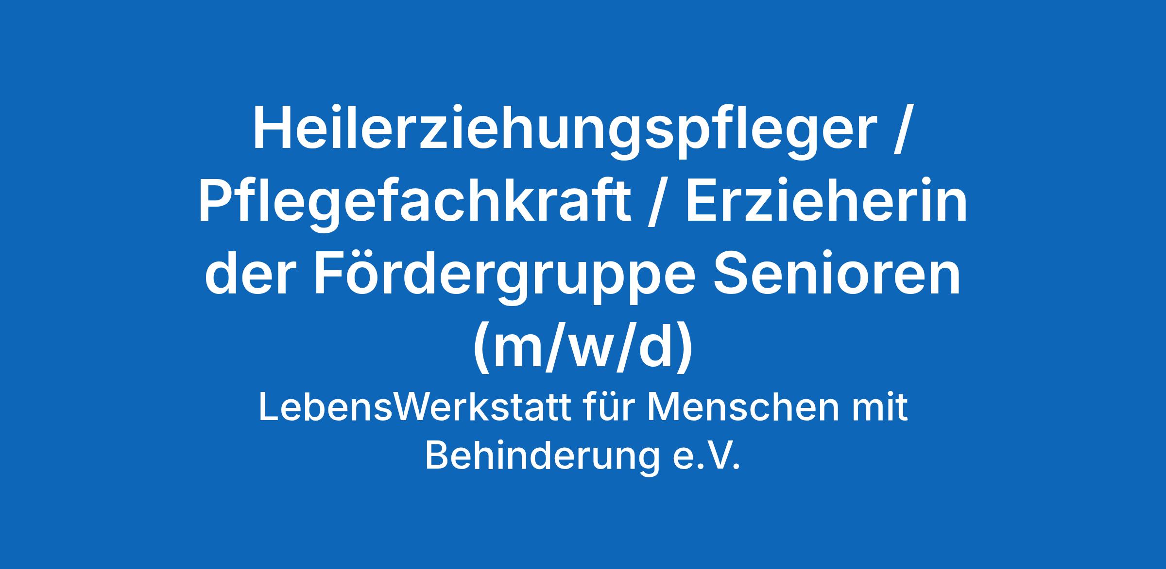 Heilerziehungspfleger / Pflegefachkraft / Erzieherin der Fördergruppe Senioren (m/w/d)