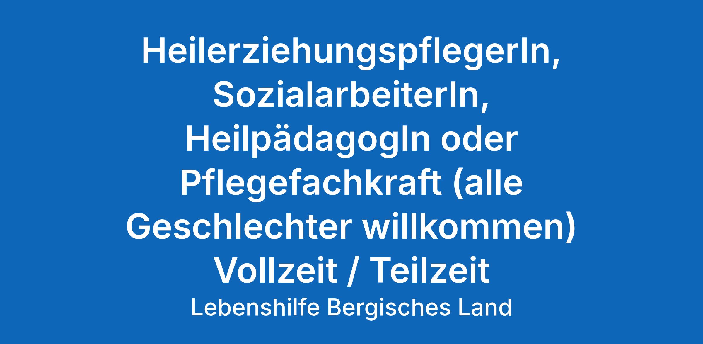 HeilerziehungspflegerIn, SozialarbeiterIn, HeilpädagogIn oder Pflegefachkraft (alle Geschlechter willkommen) in Voll- oder Teilzeit