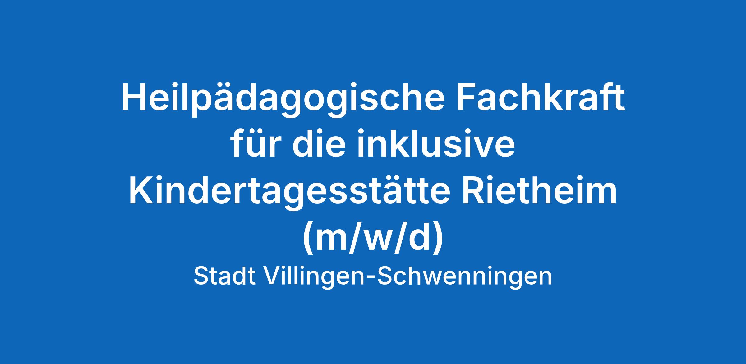 Heilpädagogische Fachkraft für die inklusive Kindertagesstätte Rietheim (m/w/d)