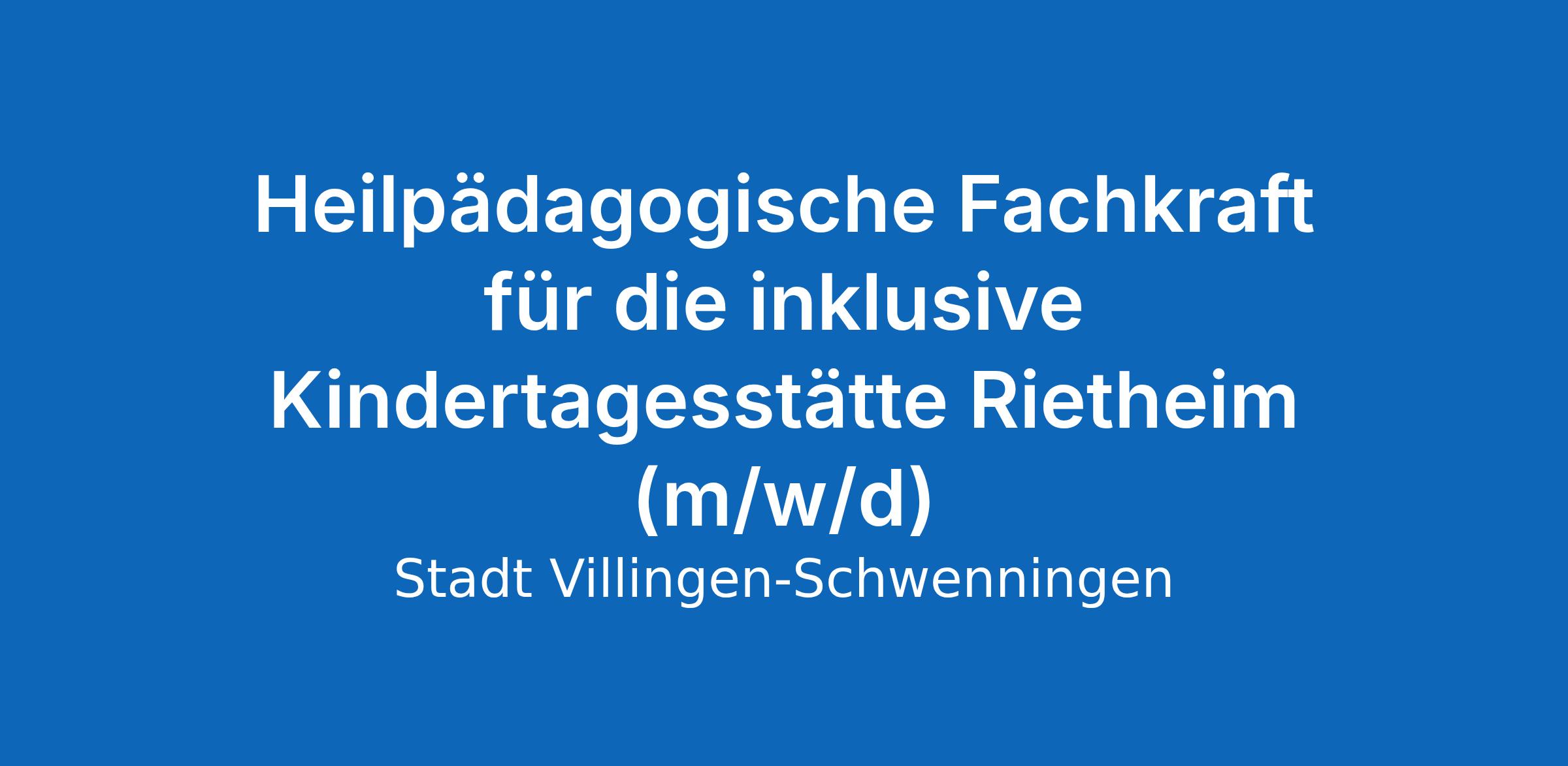 Heilpädagogische Fachkraft für die inklusive Kindertagesstätte Rietheim (m/w/d)