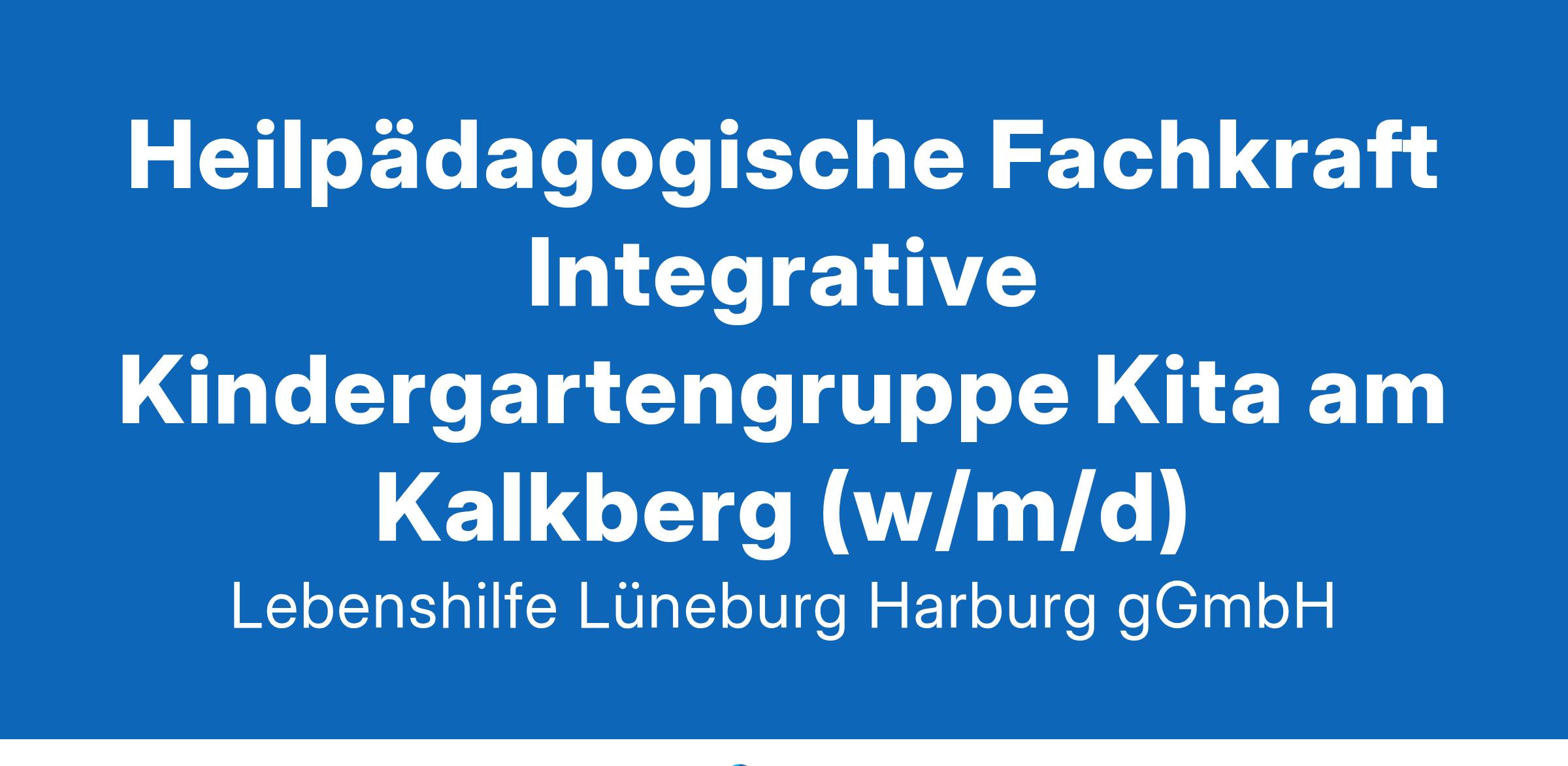 Beginn: ab sofort Wochenstunden: 38,5 Stunden Dauer: Vertretung Arbeitsort: Lüneburg Entgelt: HTV SuE 8b Heilpädagogische Fachkraft integrative Kindergartengruppe Kita am Kalkberg (w/m/d) (Pädagogische Fachkraft mit heilpädagogischer Zusatzqualifikation, Heilerziehungspfleger*in, Heilpädagoge/-pädagogin)
