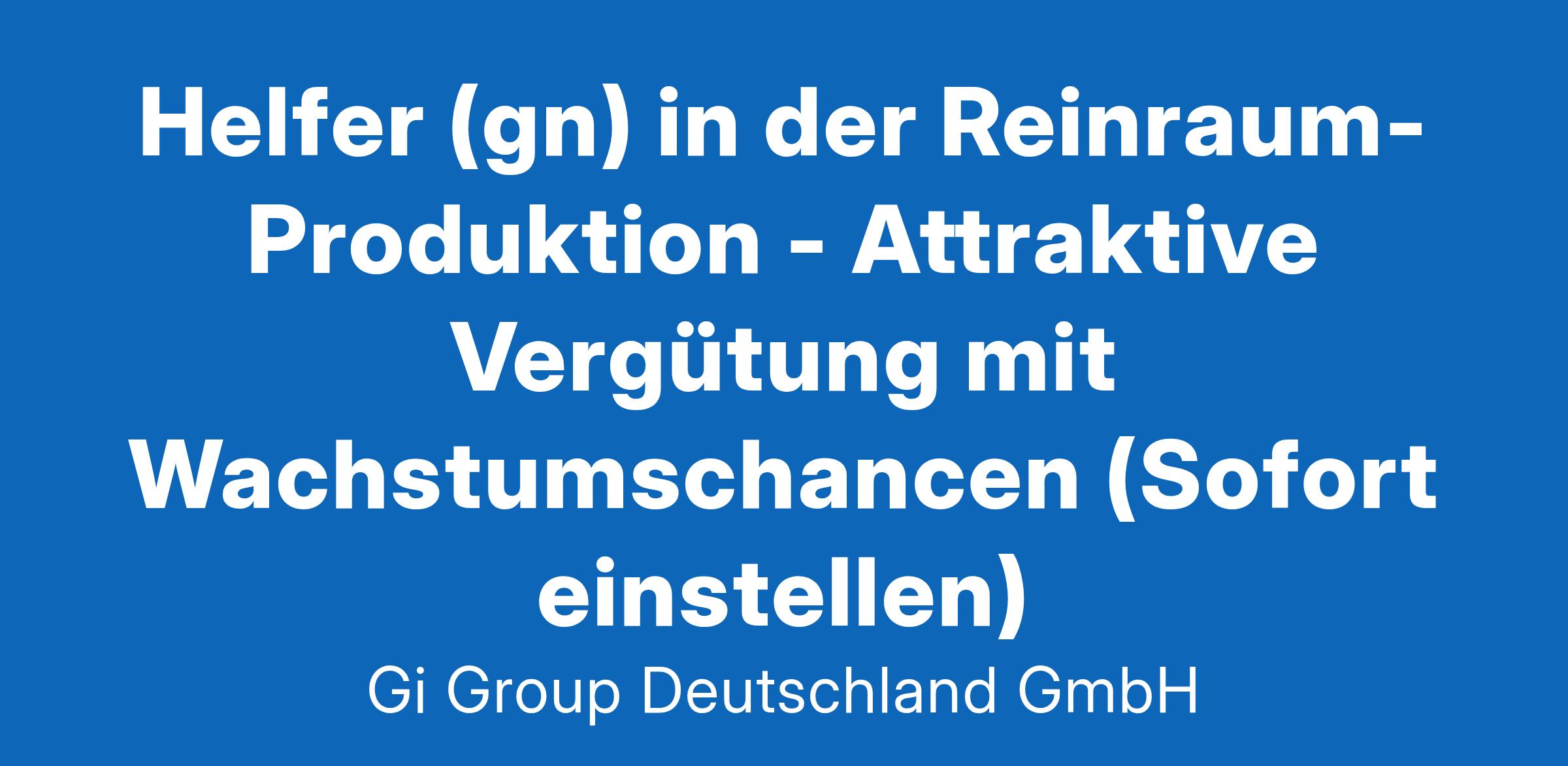 Helfer (gn) in der Reinraum-Produktion ab sofort in Vollzeit in Waldbronn Die Gi Group ist ein international agierender Personaldienstleister mit mehr als 500 Standorten in 40 Ländern. Unser Angebot Attraktive Vergütung ab 15,23 €/Std.steigend mit Betriebszugehörigkeit Einen langfristigen Einsatz in einem unserer top Kundenunternehmen Gute Erreichbarkeit mit dem PKW und nahegelegene Parkplätze vorhanden Entwicklungsmöglichkeiten mit dem Netzwerk eines internationalen Unternehmens Dein Profil als Helfer Erste Arbeitserfahrung in Produktionsumgebungen und Reinraum (wünschenswert) Bereitschaft in Wechselschicht (Früh- oder Spätschicht) zu arbeiten Gute Deutschkenntnisse mind. B Level in Wort und Schrift Fingerfertigkeit, Nichtraucher und kein Make-up Deine Aufgaben Herstellung von Screen Tapes Regelmäßige Qualitätskontrollen und einfache Fehlerbehebungen Kontinuierliche Reinigung und Inspektion des Produktions-Equipments Überwachung und Sicherstellung des Materialflusses Deine Bewerbung Für Deine Bewerbung als Helfer klicke bitte einfach auf „Jetzt bewerben“. Dort kannst Du Deine Kontaktdaten eingeben sowie Deinen Lebenslauf und Deine Bewerbungsunterlagen hochladen. Du benötigst dafür nur ca. 1 Minute. Dein zuständiger Personaldisponent wird sich bei Dir schnellstmöglich melden. Gerne kannst Du uns auch Deine Bewerbungsunterlagen per E-Mail zusenden. Wir freuen uns auf Deine Bewerbung! Unsere Stellenangebote richten sich an Arbeitssuchende jeglichen Geschlechts. (gn) = geschlechtsneutral. Kontakt Gi Group Recruiting Team