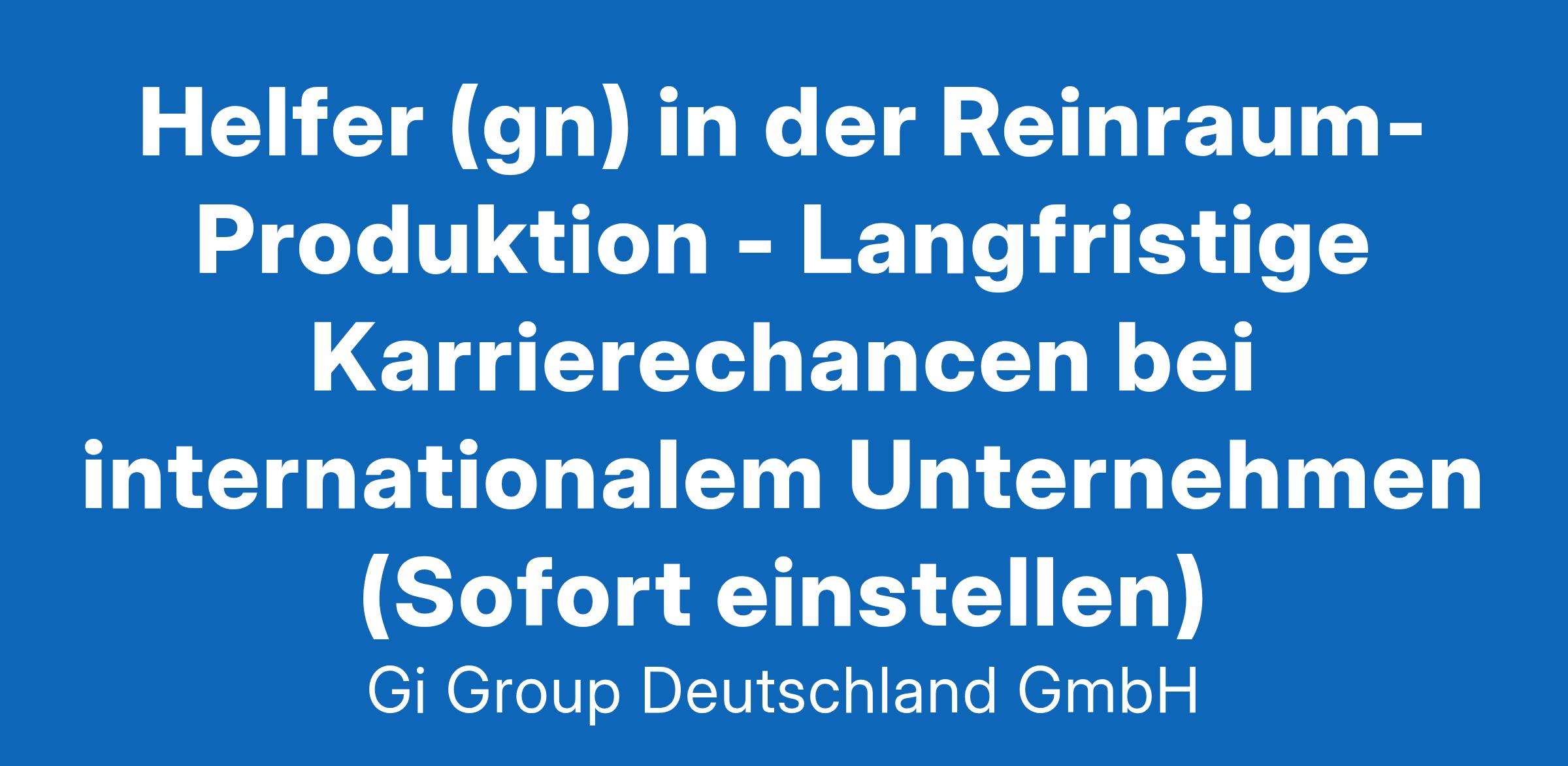 Helfer (gn) in der Reinraum-Produktion ab sofort in Vollzeit in Waldbronn Die Gi Group ist ein international agierender Personaldienstleister mit mehr als 500 Standorten in 40 Ländern. Unser Angebot Attraktive Vergütung ab 15,23 €/Std.steigend mit Betriebszugehörigkeit Einen langfristigen Einsatz in einem unserer top Kundenunternehmen Gute Erreichbarkeit mit dem PKW und nahegelegene Parkplätze vorhanden Entwicklungsmöglichkeiten mit dem Netzwerk eines internationalen Unternehmens Dein Profil als Helfer Erste Arbeitserfahrung in Produktionsumgebungen und Reinraum (wünschenswert) Bereitschaft in Wechselschicht (Früh- oder Spätschicht) zu arbeiten Gute Deutschkenntnisse mind. B Level in Wort und Schrift Fingerfertigkeit, Nichtraucher und kein Make-up Deine Aufgaben Herstellung von Screen Tapes Regelmäßige Qualitätskontrollen und einfache Fehlerbehebungen Kontinuierliche Reinigung und Inspektion des Produktions-Equipments Überwachung und Sicherstellung des Materialflusses Deine Bewerbung Für Deine Bewerbung als Helfer klicke bitte einfach auf „Jetzt bewerben“. Dort kannst Du Deine Kontaktdaten eingeben sowie Deinen Lebenslauf und Deine Bewerbungsunterlagen hochladen. Du benötigst dafür nur ca. 1 Minute. Dein zuständiger Personaldisponent wird sich bei Dir schnellstmöglich melden. Gerne kannst Du uns auch Deine Bewerbungsunterlagen per E-Mail zusenden. Wir freuen uns auf Deine Bewerbung! Unsere Stellenangebote richten sich an Arbeitssuchende jeglichen Geschlechts. (gn) = geschlechtsneutral. Kontakt Gi Group Recruiting Team
