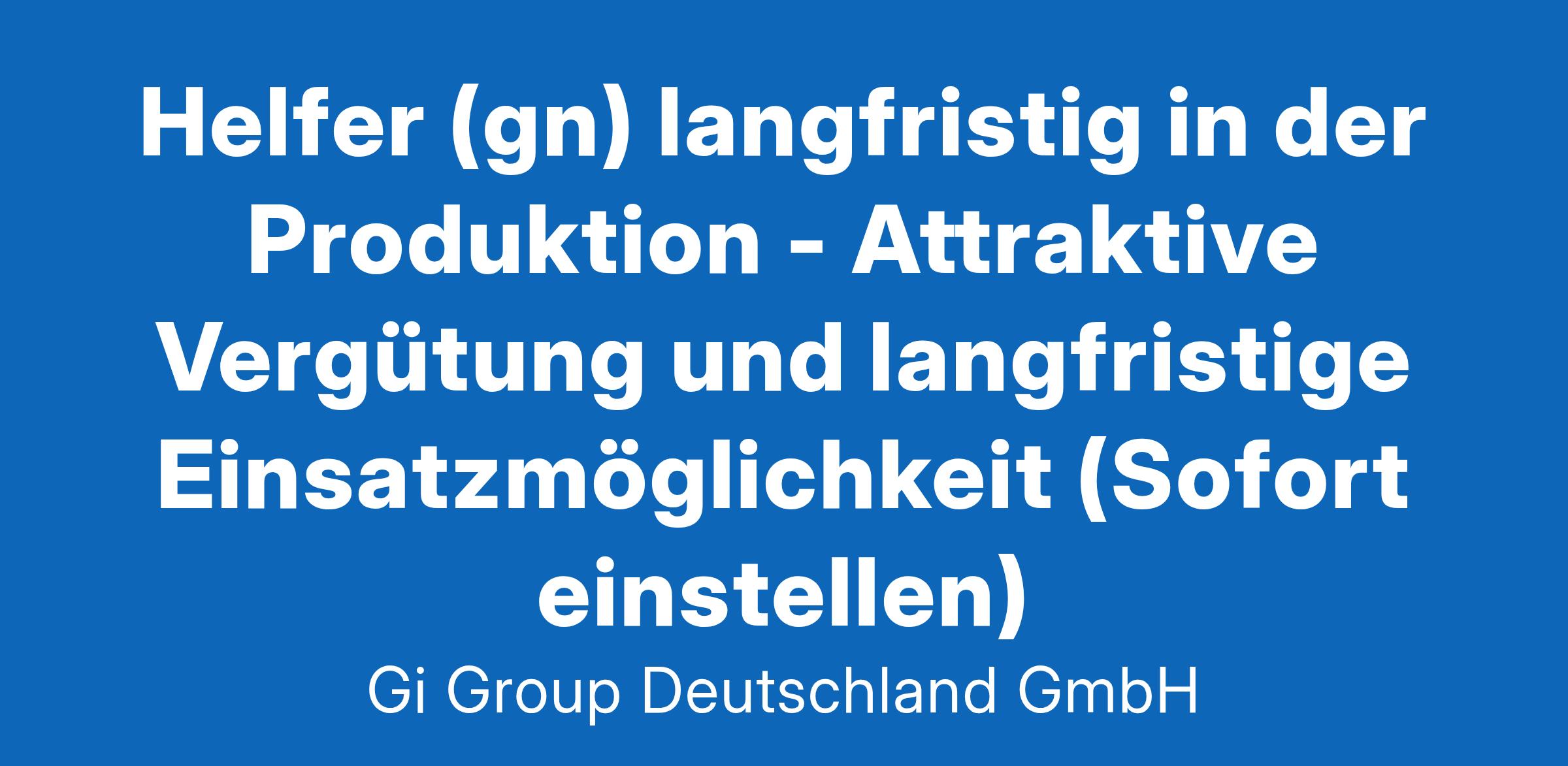 Helfer (gn) langfristig in der Produktion - Attraktive Vergütung und langfristige Einsatzmöglichkeit (Sofort einstellen)