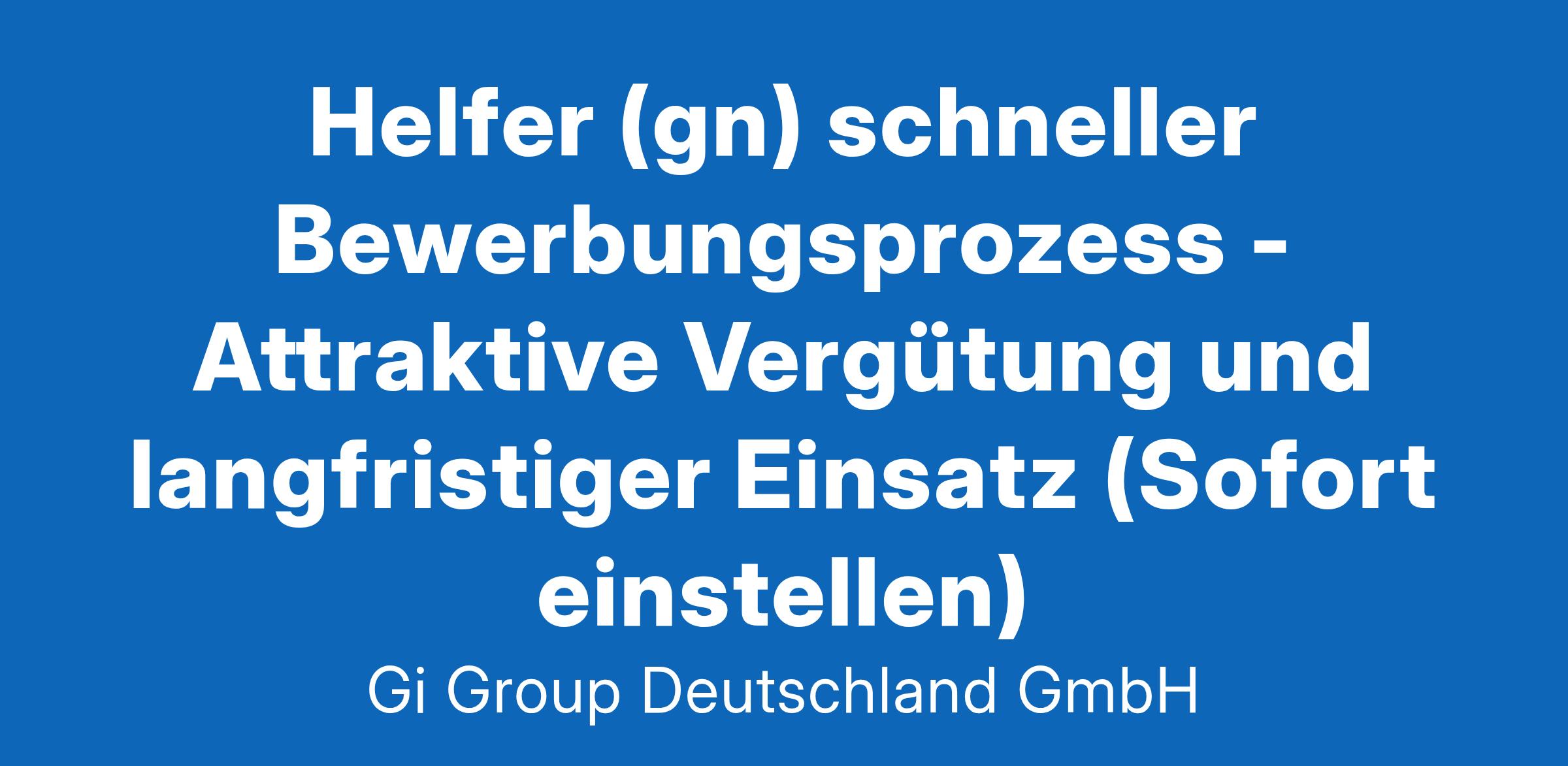 Helfer (gn) schneller Bewerbungsprozess - Attraktive Vergütung und langfristiger Einsatz (Sofort einstellen)